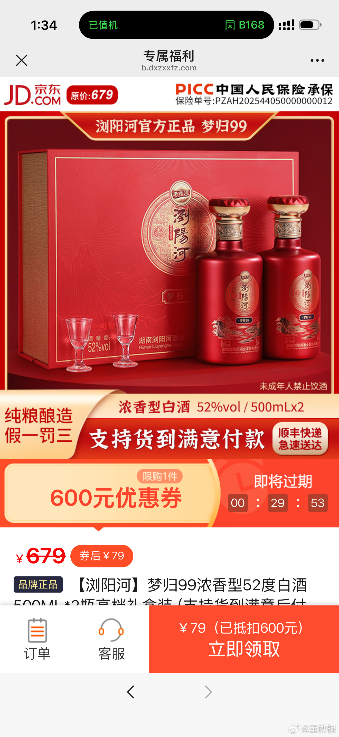 谁能想到,直接跳转到一个JD白酒购买界面,原价679元的白酒,券后仅需79元。看着也挺高级。