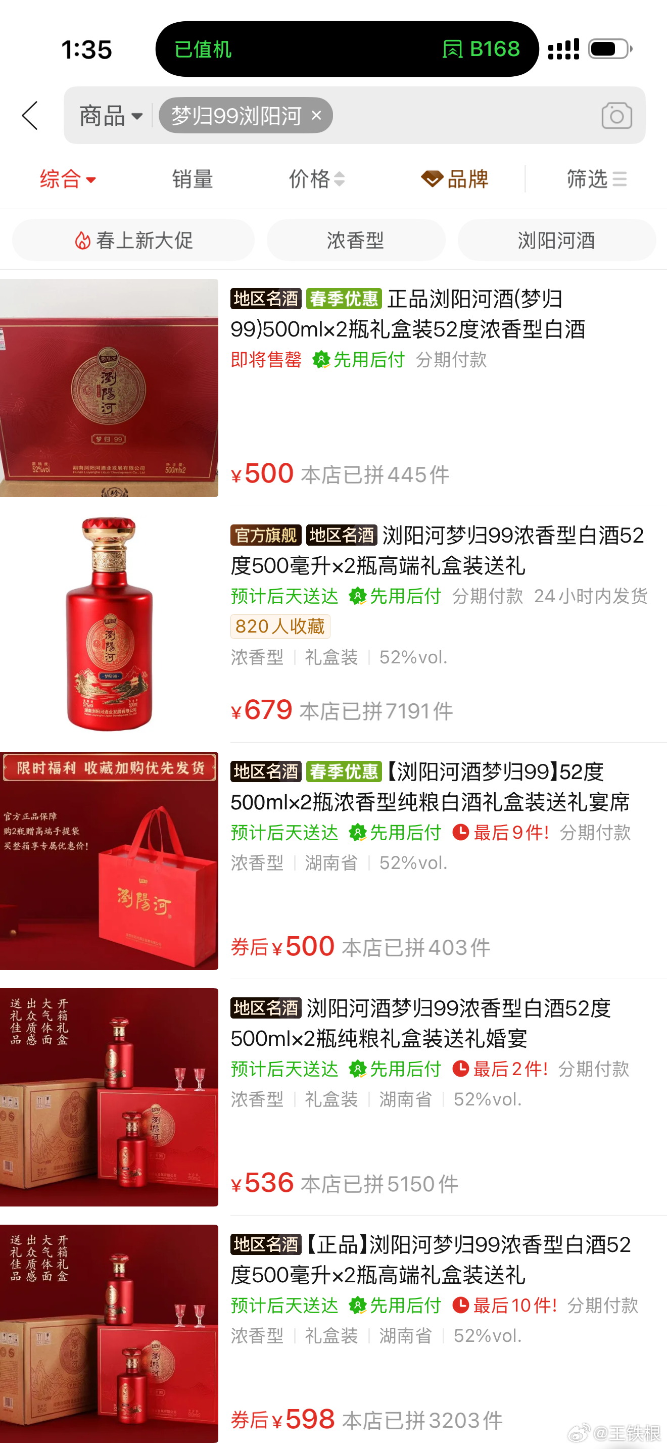 我当场就想到一定是这个酒本来就值79。我马上去淘宝上看看不就得了!谁能想到上了淘宝一搜这个酒,确实卖六七百块。我想那我去拼多多看看,拼多多这个平台肯定是能多低就多低的价格吧?谁能想到拼多多搜了一下,出来的也都是六七百元。这就很奇怪了。