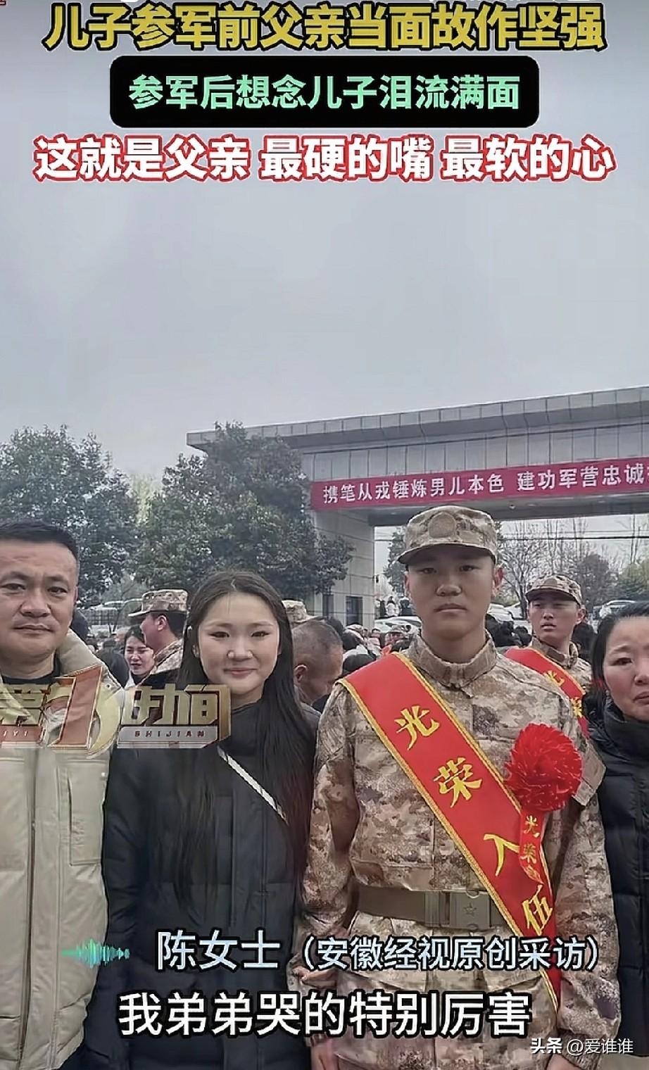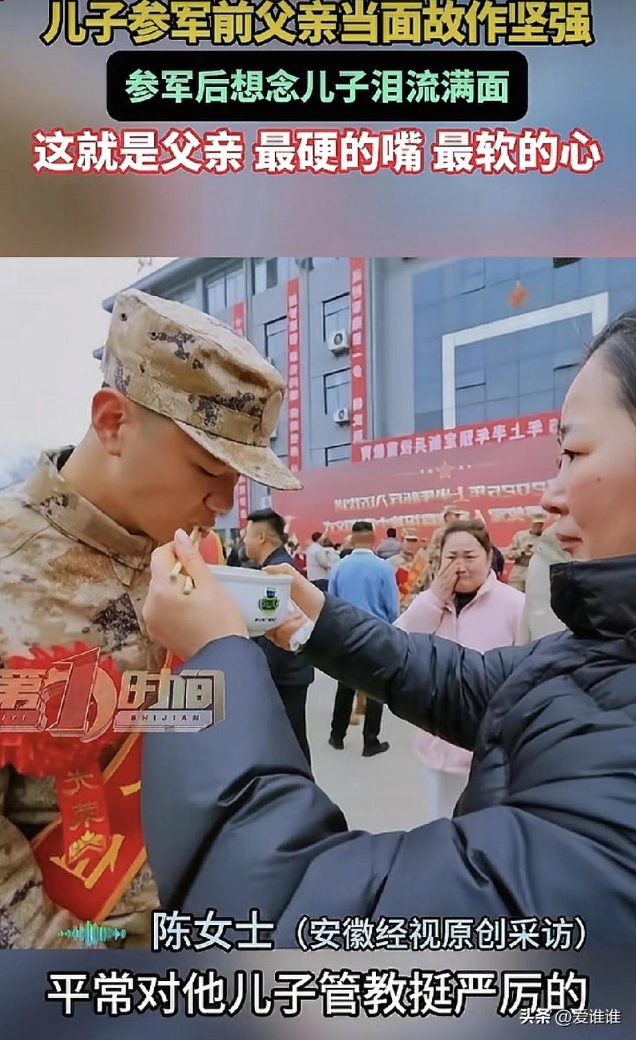 “这就是父亲!”父亲送儿子参军,离别前故作坚强,转身后却泪流满面,担心儿子受苦,担心儿子吃不好,担心儿子不适应外面的环境,网友都说:“这就是父亲,最硬的嘴,最软的心!” 2026年3月16日,河南许昌,新兵入伍欢送现场,人群里,一个四十多岁的男人,穿着一件洗得有些发白的夹克,手里端着一碗饺子,这是他天不亮就起来包的,猪肉大葱馅儿,儿子从小最爱吃的那一口。 他儿子站在他对面,穿着一身崭新的迷彩服,胸前戴着大红花,稚嫩的脸上努力装出几分成年人的沉稳,再过一会这身军装就要跟着儿子上火车,往不知道哪个方向的军营去。 父亲把碗递过去,嘴上却不饶人:“多吃点,到了部队可就吃不着家里的味儿了。”儿子接过碗,低头扒拉了两个饺子,喉咙却像是被什么堵住了似的,咽不下去。 旁边来送行的亲戚在旁边起哄:“当兵是好事,哭啥哭!”儿子红着眼眶说没哭,当爹的也跟着帮腔:“就是,保家卫国,俺舍得!” 这话说得多硬气啊,周围的人听着都笑了,说这当爹的真是铁石心肠。 可儿子真的把碗递回来,转身要往队列里走的时候,这个刚才还嘴硬的男人,突然伸出手,一把将儿子拽进了怀里。 他抱得很紧,粗糙的手指攥着儿子后背的军装,指节都泛了白。眼泪从他黝黑的脸颊上滚下来,滴在儿子的迷彩帽上,一滴,两滴。他的嘴唇哆嗦着,想说什么,却一个字都说不出来,只是把儿子箍在怀里,像是要把这十几年没抱够的份儿都补回来。 儿子先是愣住了,然后也伸手搂住父亲的背,轻轻拍着,周围一下子安静了,有人别过头去抹眼睛,有人举起手机拍下了这一刻。 这个画面后来被传到了网上。一个河南的网友在下面留言说:“我爹当年送我当兵也这样。走的时候他说‘赶紧滚,别碍眼’,头都没回。后来我妈告诉我,他骑着自行车回家,骑到半路蹲在路边哭得像个孩子。”这条评论下面跟了上千条回复,几乎每个当过兵的人,都有这样一个“嘴硬心软”的父亲。 有人把他那天送兵的视频发到网上,标题写的是:“这就是咱河南爹——人前说舍得,人后哭成河。” 底下有个网友留言说:“我爸也是河南人,我考上军校那天,他高兴得喝了半斤酒,送我走的时候,他连村口都没出,让我妈送的,后来我放假回家,邻居跟我说,我走那天我爸一个人在村口站了俩小时,谁叫都不回。” 还有一个网友说:“我当了十二年兵,最怕的就是每次回家探亲结束要走的时候。我爸每次都只说一句话:‘好好干,别惦记家。’可他每次都会往我包里塞东西,有时候是一袋子花生,有时候是几瓶自家做的酱。有一次我到了部队打开包,发现包里多了一千块钱,还有一张纸条,上面就三个字:‘拿着花。’” 这条留言下面,有人回复了一句:“这三个字,比一万句‘我爱你’都重!”