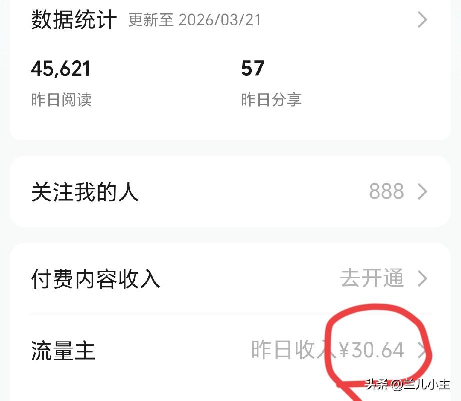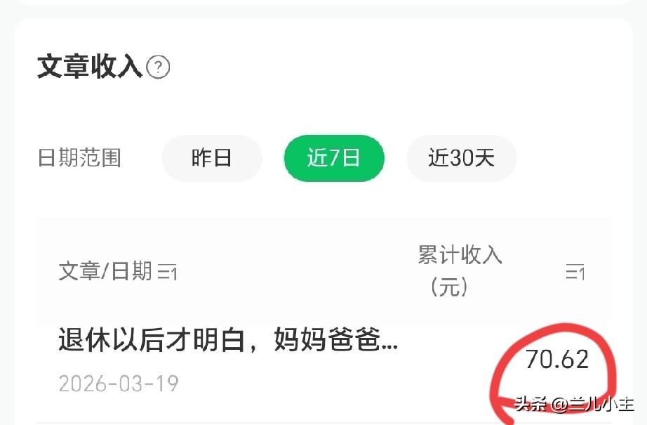 没想到啊,真的没想到。我居然写出了阅读量20w+的一篇图文,也许碰巧了。目前收益有70.62元。 春日生活打卡季我发现无论怎么写,都要言简意赅,读者不喜欢太多的铺陈,开门见山就好。现在都是碎片化时间,没人有那么多时间听你碎碎念。所以短平快挺好的! 定位自己的风格,大同小异,别总改赛道,自己定位以后,写起来也很有条理。