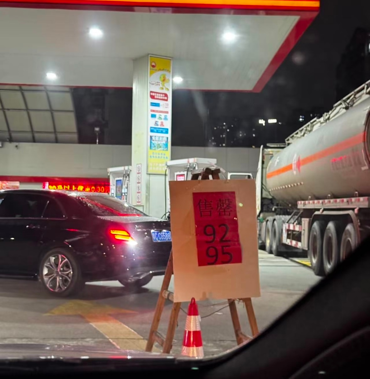 油价飙升加油站变大型停车场今天晚上加油站油都售罄了。这次涨价幅度比较大,排队的车更多了……