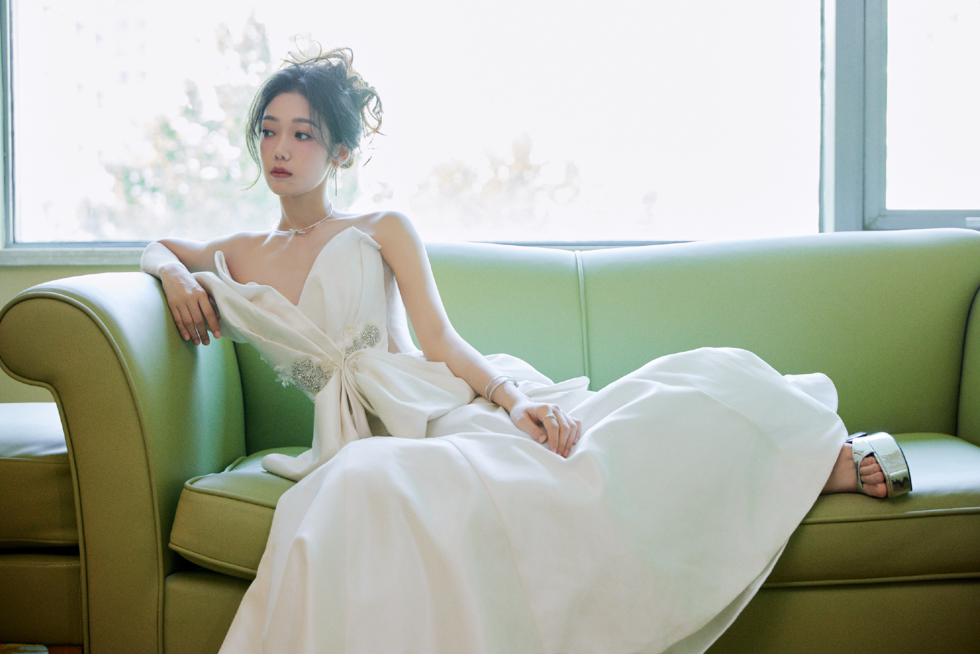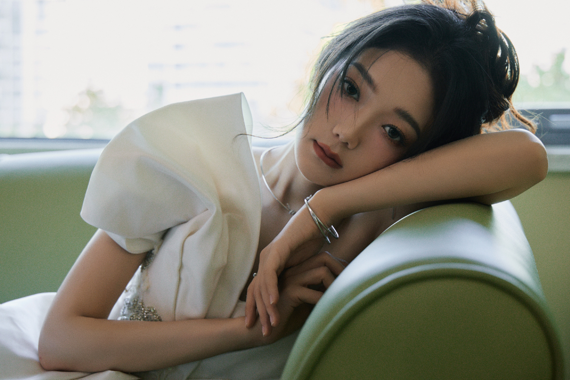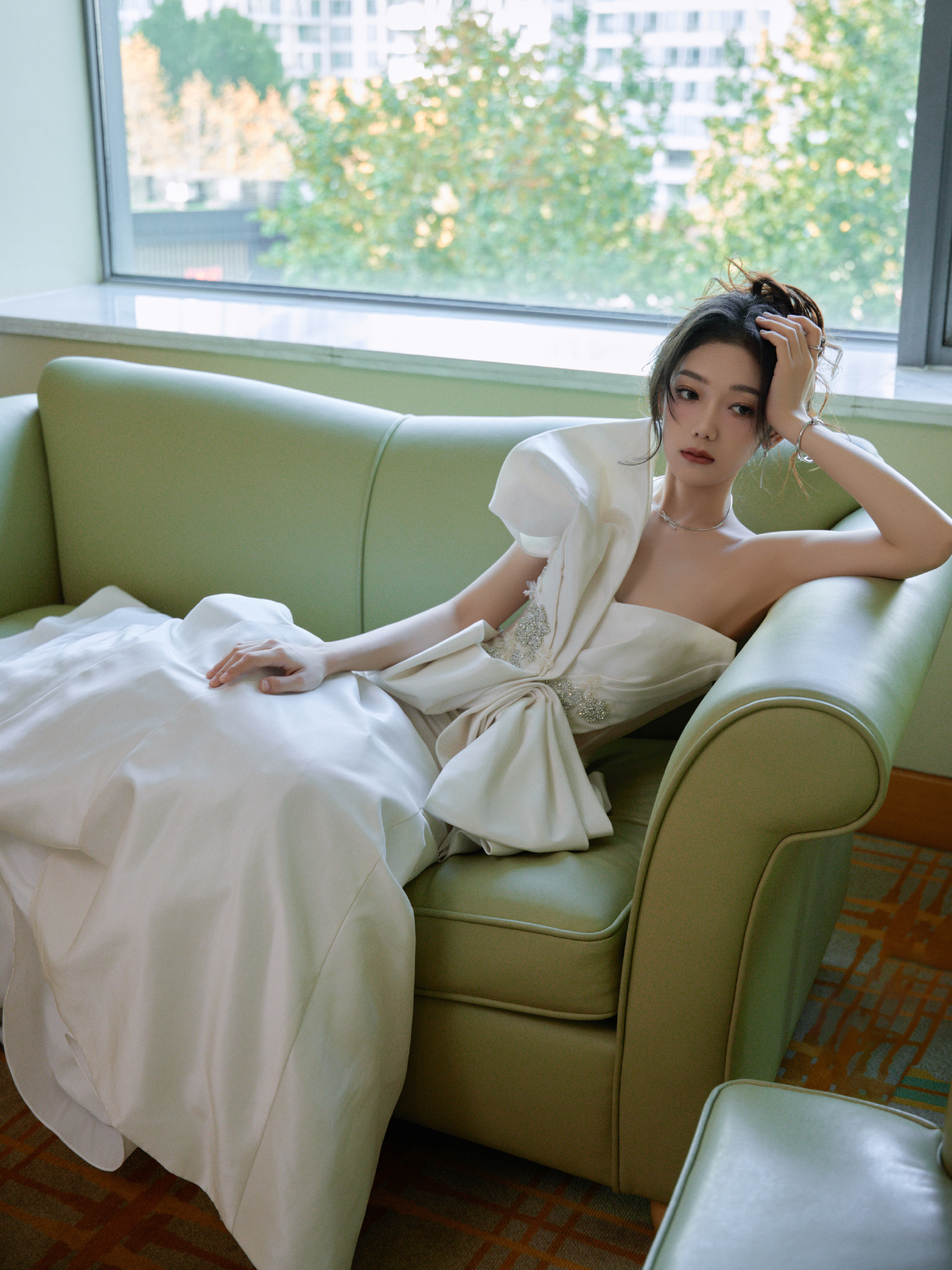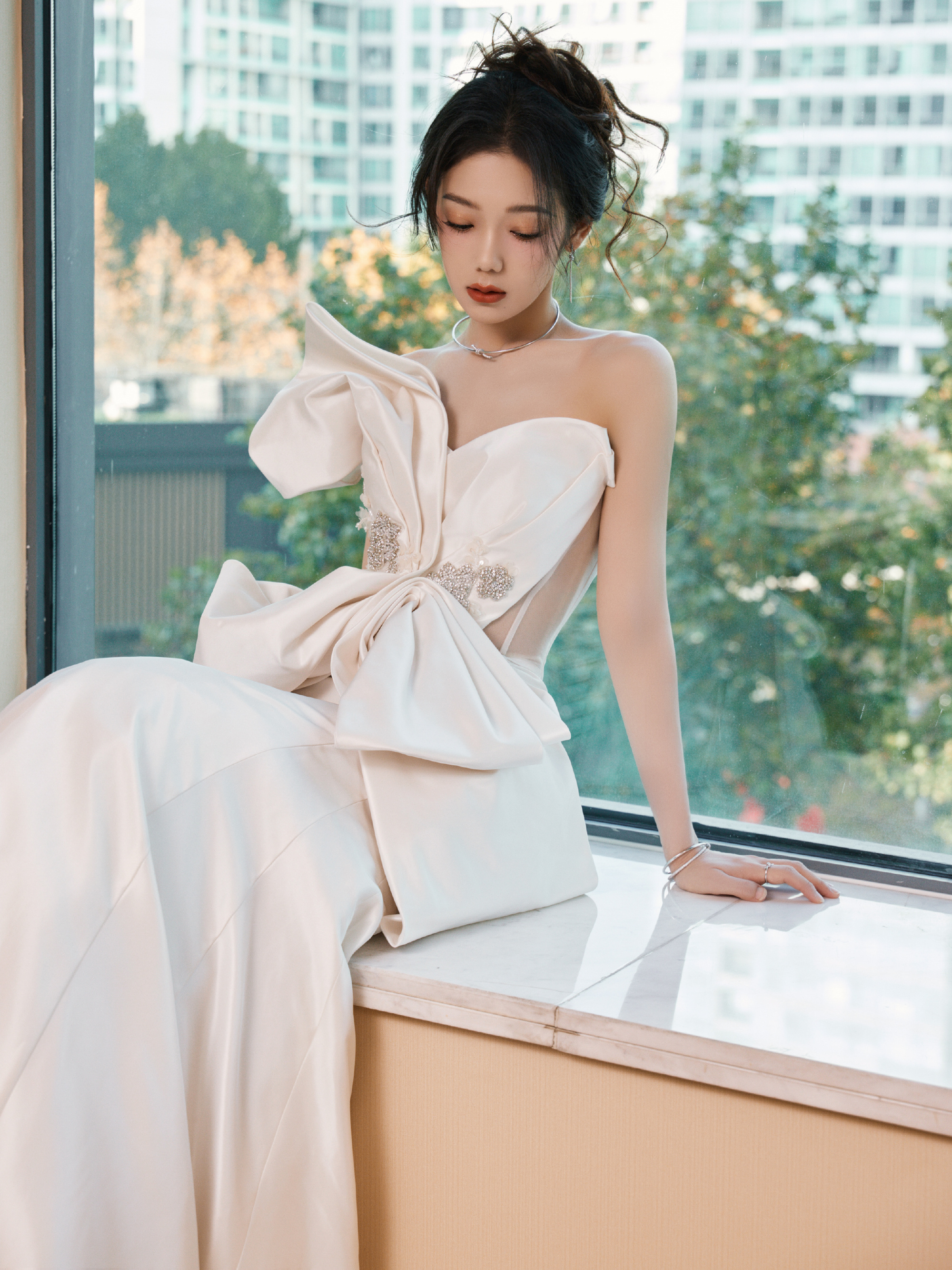希林娜依高白裙甜美少女感:饱含馥郁,绽放优雅。希林娜依高