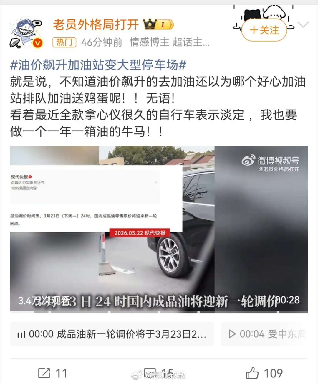油价飙升加油站变大型停车场兄弟们,油价要涨了