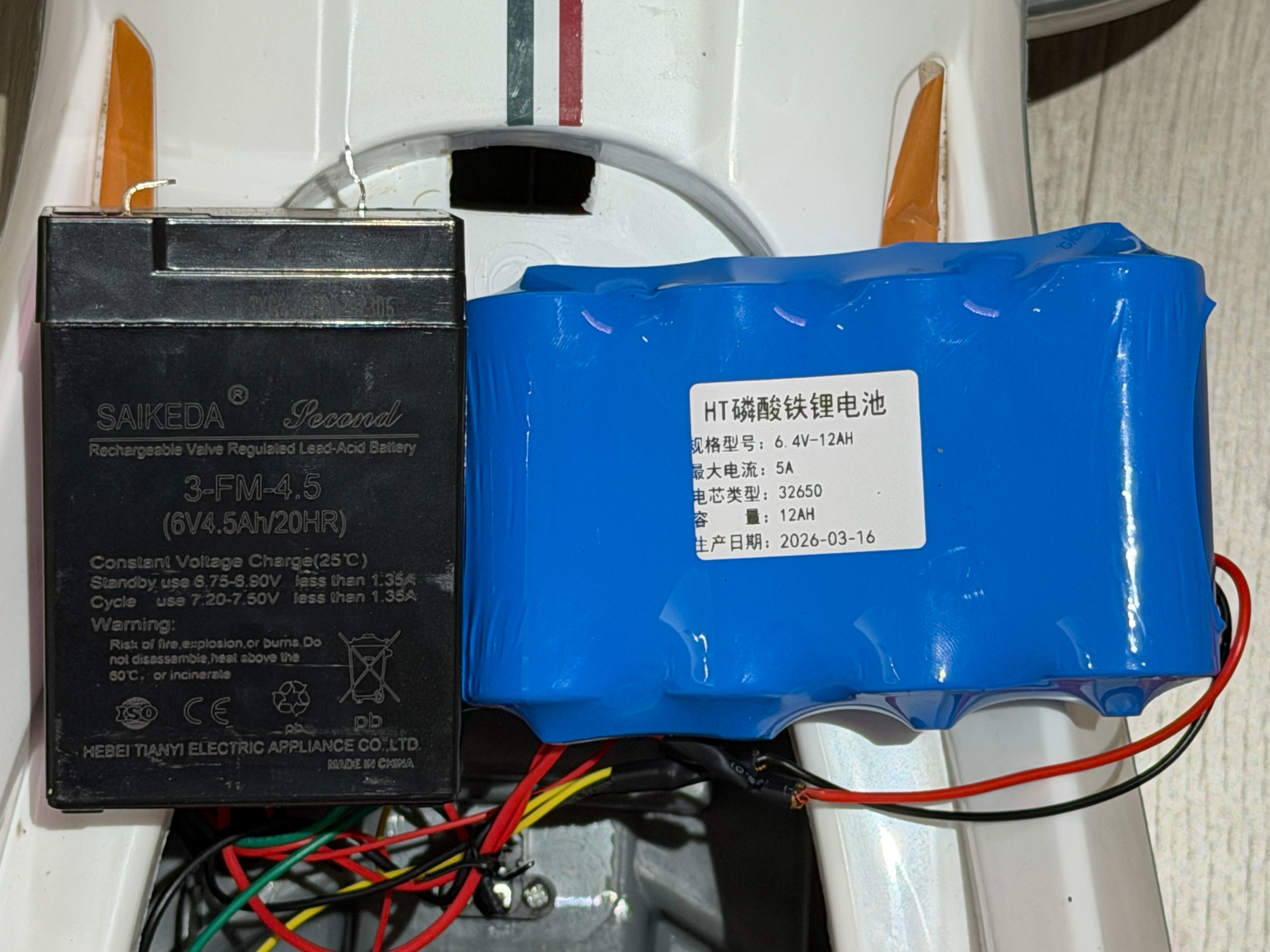 三年前买的电动扭扭车,现在充电一晚上续航3分钟,换电池时发现,额定电压6V的铅酸电池可以用两串的6.4V磷酸铁锂电池包平替,充电器都不用换。动力续航都提升明显。