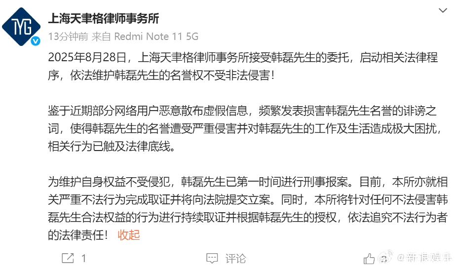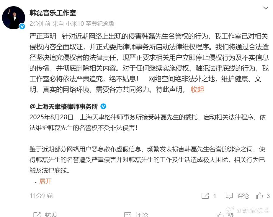 韩磊出轨风波8个月后反转!女方删道歉反咬,还曝被其妻子骚扰侮辱 8个月前就道歉收场的韩磊出轨风波,居然又炸出了新反转!当初认了爆料不实的女方,如今删光道歉内容,不仅否认被韩磊起诉,还接连放料,把韩磊夫妇一起推上了风口浪尖。 这事还要从2025年8月说起。当时这位女网友突然晒出韩磊私照,控诉对方让自己怀孕后狠心抛弃,还拿走了存有她亡母照片和声音的手机,讨要多次都没结果。紧接着网上又流出疑似韩磊妻子连线情感主播的音频,哭诉丈夫多次出轨、偷税漏税,细节和女方爆料完全对上,风波瞬间发酵,韩磊的评论区直接沦陷。 面对舆论,韩磊工作室很快发了律师声明,称已全面取证启动法律程序,还透露韩磊已经报警;韩磊妻子也同步辟谣,否认自己连线过主播,相关内容全是他人恶意伪造的。 面对韩磊方的强硬维权,爆料女网友很快就软了下来,公开发文道歉,承认自己的爆料和事实不符,相关视频、聊天记录也都是从非正规渠道获取的。本以为这事到这就彻底翻篇了,后续韩磊的工作也重回正轨,新歌、影视主题曲、卫视晚会邀约不断,生活完全恢复了正常。 谁都没料到,时隔8个月,这位女网友突然杀了个回马枪。 她直言自己从没收到过法院传票,连警察的电话都没接过,当初韩磊的维权声明不过是虚张声势,本质就是怕她继续爆料。她还吐槽,自己这大半年多次想发声,结果微博次次被投诉下架,完全被“捂嘴”了。 更劲爆的是,她还把矛头对准了韩磊的妻子,称自己本来都打算放弃爆料了,结果对方不仅私下警告她“不要试图对抗明星”,还各种私信侮辱、批量举报她的账号,让她持续遭受网络暴力。除此之外,她还重提韩磊偷税漏税传闻,爆料韩磊的身体状况、外债房贷等私事,一口咬定自己的遭遇全是韩磊在背后指挥。 可翻来覆去,她只拿出了一段无法验证真假、仅能证明二人认识的聊天记录,根本没有能支撑爆料的实质性证据。 这波操作一出,网友直接吵翻了天。不少人吐槽女方的操作太过迷惑,“当初道歉的是你,现在反水的也是你,没实锤说什么都没用”,还有人觉得她是看韩磊工作重回正轨,特意出来蹭热度;但也有网友提出了质疑,好奇如果韩磊真的要起诉,为何8个月过去女方都没收到传票。 其实说到底,爆料也好维权也罢,核心永远是证据。没有实锤的文字爆料,终究很难让网友买账,而这种反反复复的舆论风波,对明星的口碑也难免造成不可逆的损耗。 大家看完这波反转,更相信哪一方的说法?
