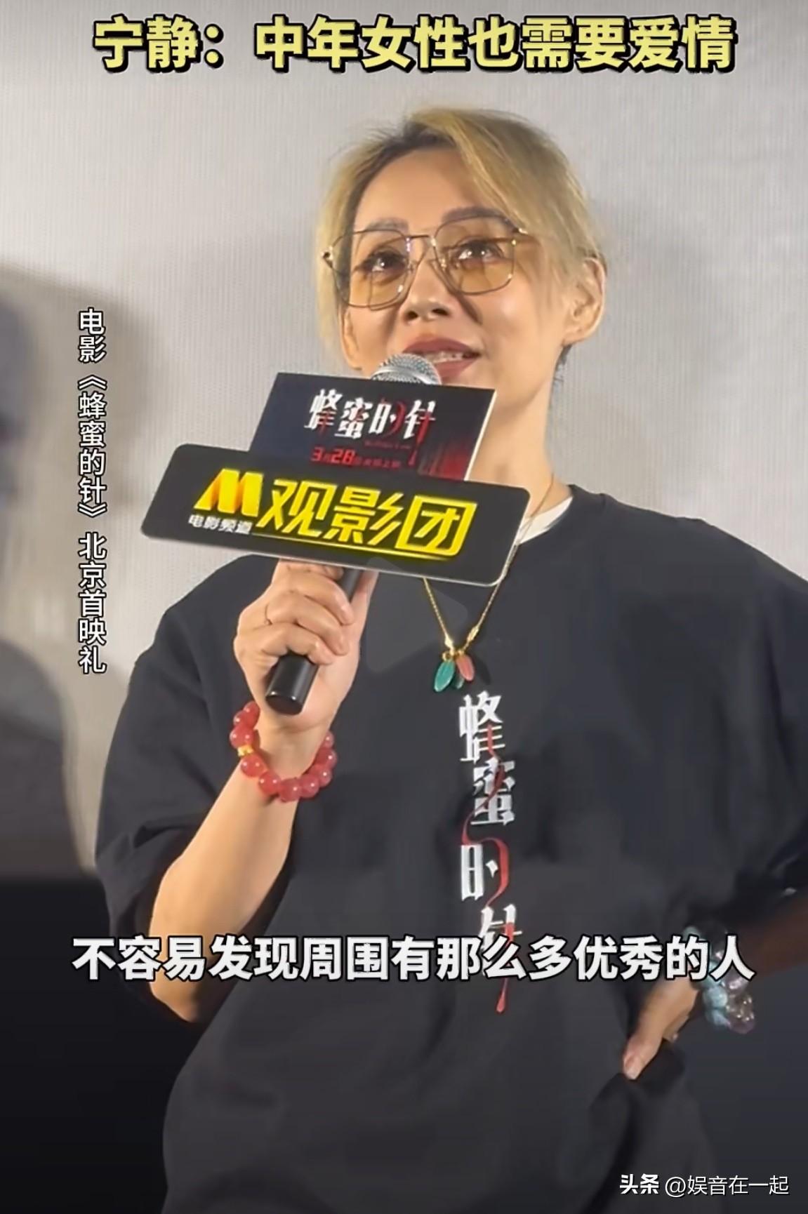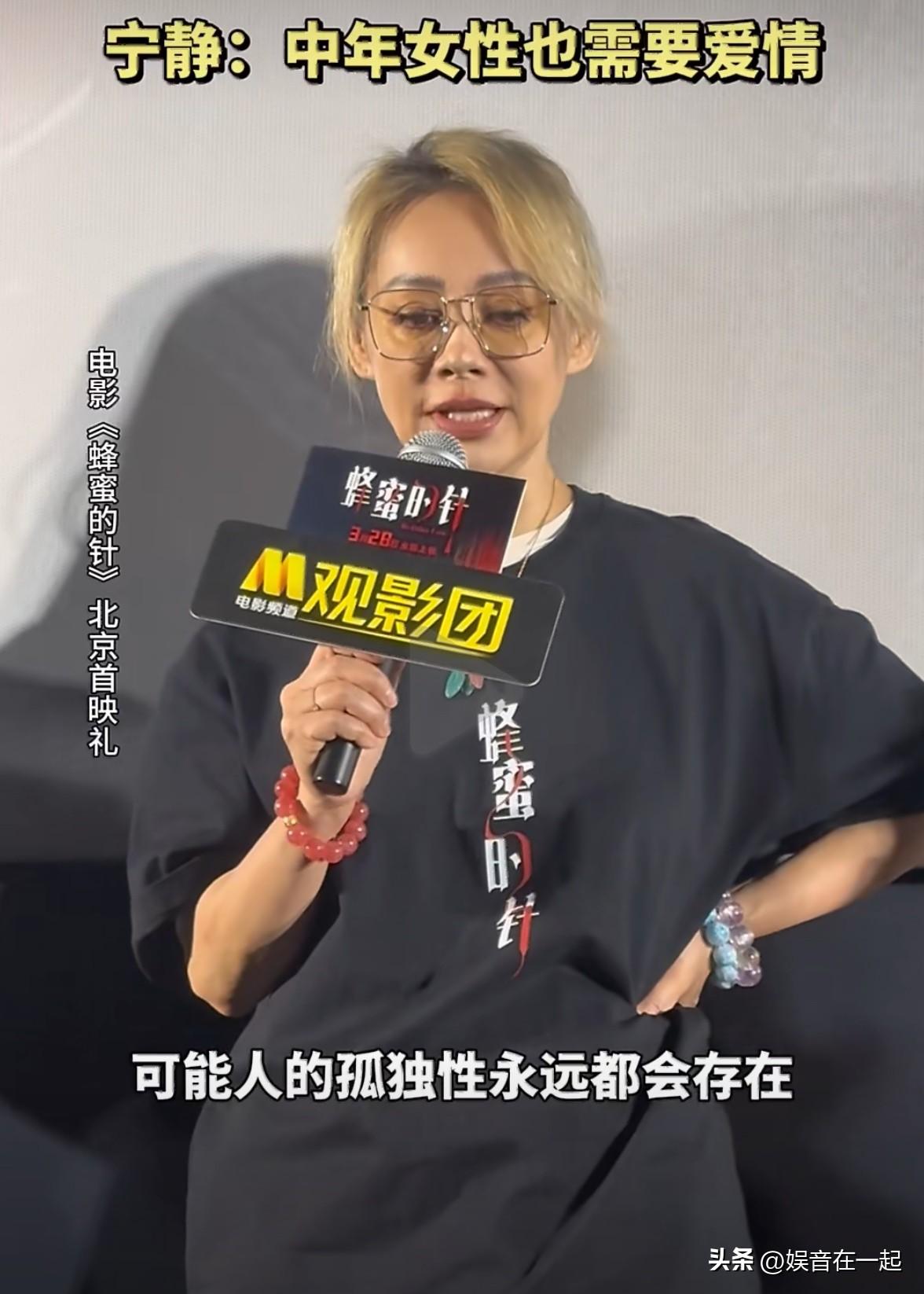 3月21日《蜂蜜的针》首映礼上,宁静被问中年女性对爱情的需求,先慌乱说“我们没有需求”,后意识到不妥,又解释自己也看相亲节目,年纪大的姐姐需要陪伴,但像她这种忙碌的中年女性无暇顾及感情。她还以“视力下降看不清优秀的人,听力退化听不进甜言蜜语”自嘲。 这回应折射出中年女性情感需求的转变,从向外求热恋到向内寻自我价值。数据显示,中国45岁以上女性离婚率较十年前上升37%,超60%表示更重视自我实现。爱情对中年女性而言,不再是必需品,而是精神共鸣的调味剂。