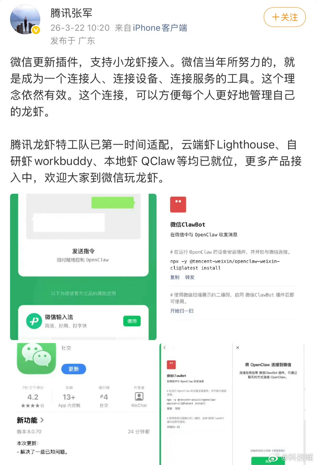 微信推出龙虾插件我刚才试了一下,更新微信最新版本就可以了,还挺方便,又多一个