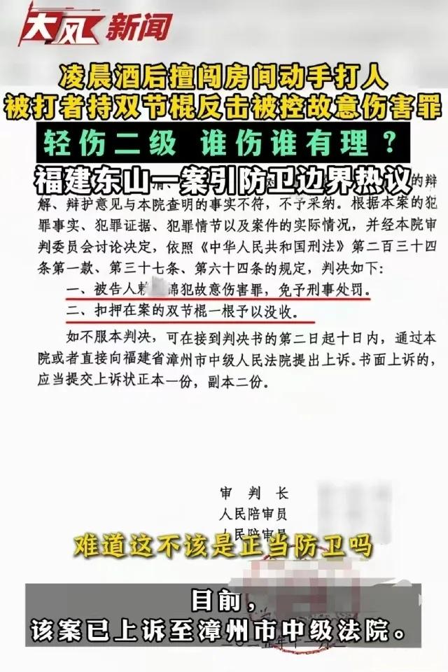 “我用双截棍反击,凭啥判我故意伤害?”男子被打后还手,却被关了8个月,对方只拘留4天!正当防卫和互殴的界限在这里 来源:大风新闻 今天说的这个案子,看得人憋屈。 福建东山,赖某带着员工出差住酒店,半夜两点,曾经的合伙人陈某突然闯进房间,一脚把他踹翻在地。赖某个矮,只有1米63,陈某1米8多,又高又壮。赖某被打得嘴里出血,眼看拦不住,从包里摸出健身用的双截棍反击,把陈某打伤了。 结果你猜怎么着?陈某只被拘留了4天,赖某却因故意伤害罪被关了8个月! 赖某不服:明明是对方打上门,我被打得吐血才还手,凭什么是我坐牢? 今天咱们不站队,就掰扯掰扯:这到底是正当防卫,还是故意伤害?法律到底怎么定? 一、陈某闯进房间动手,赖某有没有权利反击?有! 咱们先看第一个问题:赖某能不能还手? 《刑法》第二十条写得明明白白:为了使本人的人身免受正在进行的不法侵害,而采取的制止不法侵害的行为,对不法侵害人造成损害的,属于正当防卫,不负刑事责任。 案发那天,陈某半夜闯进赖某房间,先推倒,后脚踹,还拿小圆几砸人。这时候,陈某的不法侵害正在进行,赖某的人身安全正受到威胁。在这种情况下,赖某当然有权防卫。这一点,一审法院也认了——赖某的反击“具有防卫性质”。 所以,不是“被打不能还手”,而是“还手要看怎么还”。正当防卫不是罪名,是法律给你的权利。但这个权利,有个边界。 二、赖某被判故意伤害,问题出在哪?防卫过当的“度”怎么把握? 一审法院认定赖某构成故意伤害罪,理由是“防卫过当”。什么叫防卫过当?就是防卫行为明显超过必要限度,造成重大损害。 那问题来了:什么算“明显超过”?什么算“重大损害”? 法律上,“重大损害”一般指造成不法侵害人重伤、死亡,或者造成轻伤但手段特别残忍。陈某被鉴定为轻伤二级,刚好踩在“重大损害”的边上。而“明显超过必要限度”,就是本来用拳头能制止,你却动了刀;本来推一下就行,你却往死里打。 但这里有个关键点:判断防卫是否过当,不能站在事后“上帝视角”冷静分析,而要站在防卫人当时的处境来看。 案发时是什么情况?凌晨两点,对方酒后闯进房间,1米8多的壮汉,1米63的赖某已经被打出血,旁边两个帮手根本拉不住。对方还叫嚣“今天你们三个必须亖一个”。在这种极度紧张、力量悬殊的情况下,要求赖某精准控制反击力度,拿着双截棍只能打胳膊不能打头,打到对方“刚好服软不能受伤”——这未免太强人所难。 法律上有个原则叫“防卫人优待”,就是在紧急情况下,不能要求防卫人做出分毫不差的精确判断。只要防卫行为在当时的情况下是合理的,就不该轻易认定为过当。 三、为什么打人的只拘留4天,被打的却关了8个月?很多人不理解这个“反差” 这是让赖某最不服气的地方:陈某先动手,只拘留4天;我被打还手,却关了8个月。这公平吗? 这里要分清两个概念:行政拘留和刑事拘留。 陈某被拘留4天,是公安机关依据《治安管理处罚法》对他“殴打他人”行为的行政处罚。因为他造成的结果是赖某“未达轻微伤”,所以处罚相对较轻。 而赖某被刑事拘留、逮捕,是因为他的行为导致陈某轻伤二级,触犯了《刑法》第二百三十四条“故意伤害罪”,属于刑事案件。即便最后法院判了“免除刑事处罚”,前面的羁押过程也已经发生了。 说白了,两个人行为的“后果”不一样,启动的法律程序就不一样。陈某打人但伤轻,走的是行政处罚;赖某还手但把人打成了轻伤,走的是刑事程序。这在法律上是两条不同的轨道。 但问题在于,如果赖某的行为被认定为正当防卫,那他就不该承担任何刑事责任,更不该被关8个月。所以,这个案子真正的焦点,始终是“正当防卫还是防卫过当”。 结论:正当防卫不是“不能还手”,而是“还手要合法” 这个案子目前还在二审,赖某坚持上诉,认为自己就是正当防卫。最终结果如何,我们还得等法院的判决。 但不管结果怎样,这个案子给咱们普通人提了个醒: 第一,被人打了,你有权还手,但要注意“度”。能用拳头制止的,别动器械;能把对方逼退的,别追着打。正当防卫是保护自己,不是“合法打架”。 第二,事后报警、保留证据,比现场“打回去”更重要。赖某当时被打得吐血,这些伤情、对方闯门的监控、威胁的录音,都是证明“不法侵害正在进行”的关键证据。证据越扎实,防卫性质的认定就越清晰。 第三,法律保护的是“制止侵害”,不是“报复”。如果侵害已经停止,你还追上去打,那就从防卫变成了互殴,甚至故意伤害。 最后想问问大家:如果你是赖某,1米63的身高,半夜被1米8多的壮汉闯进房间殴打,对方还喊着“今天必须亖一个”,你会怎么应对?你觉得赖某的行为算正当防卫还是防卫过当?欢迎在评论区聊聊你的看法。