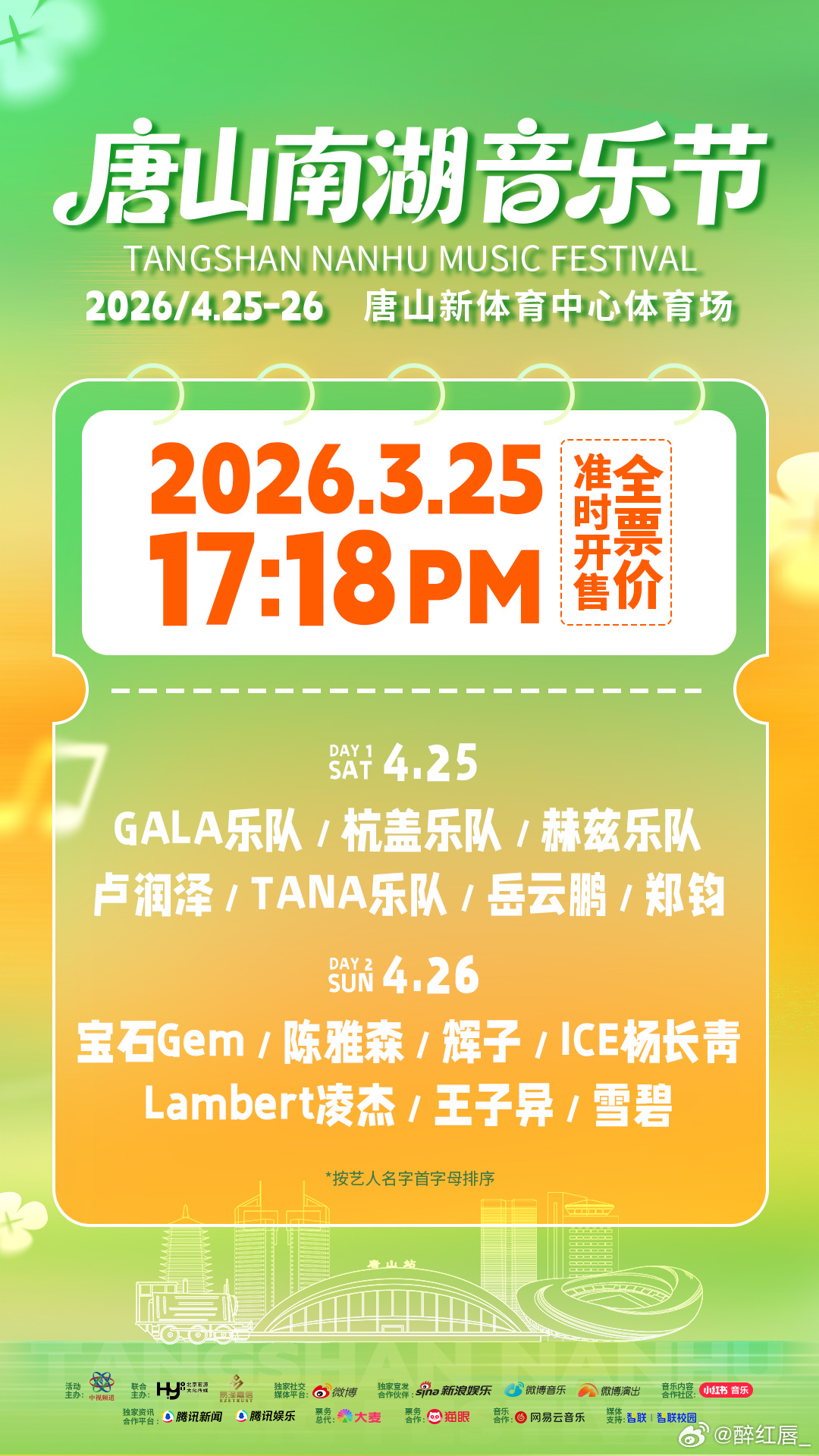 追星女孩的终极快乐:偶像们都在唐山!宝石老舅、ICE、王子异、Lambert……3月25日开票,四月底的唐山,我要带着灯牌去应援!唐山南湖音乐节
