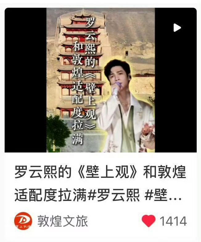 罗云熙壁上观 就说《壁上观》怎么又热了,原来是因为敦煌文旅推广大使罗云熙呀,这就很好理解了,毕竟元宵喜乐会上的《壁上观》不仅拿下收视冠军,更达成文化推广的高效落地,就连敦煌文旅也亲自认证,说罗云熙的《壁上观》和敦煌适配度拉满,官方认证,罗云熙凭实力说话!