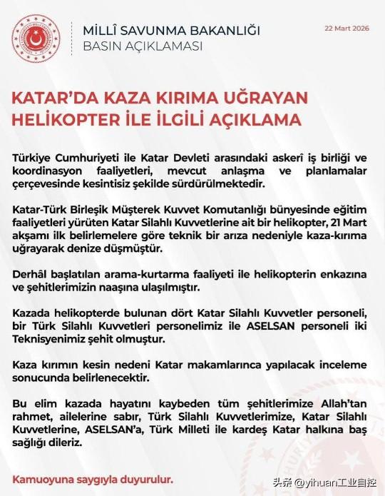 最新消息显示,卡塔尔掉到海里的无人机损失惨重,机上有7名乘员,已找到6名遇难者遗体,还有一个正在搜寻,估计凶多吉少! 事故还牵涉到国际友人,土耳其军队的一名军官和两名机械师在此次事故中丧生,估计是卡塔尔国防部请来的技术后援。