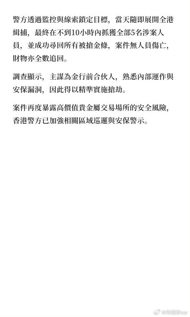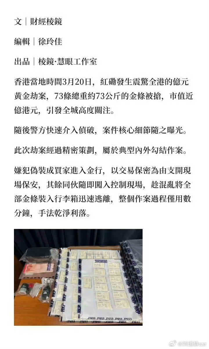香港发生亿元黄金劫案真像是电影情节啊,为什么香港总是有这种大劫案……