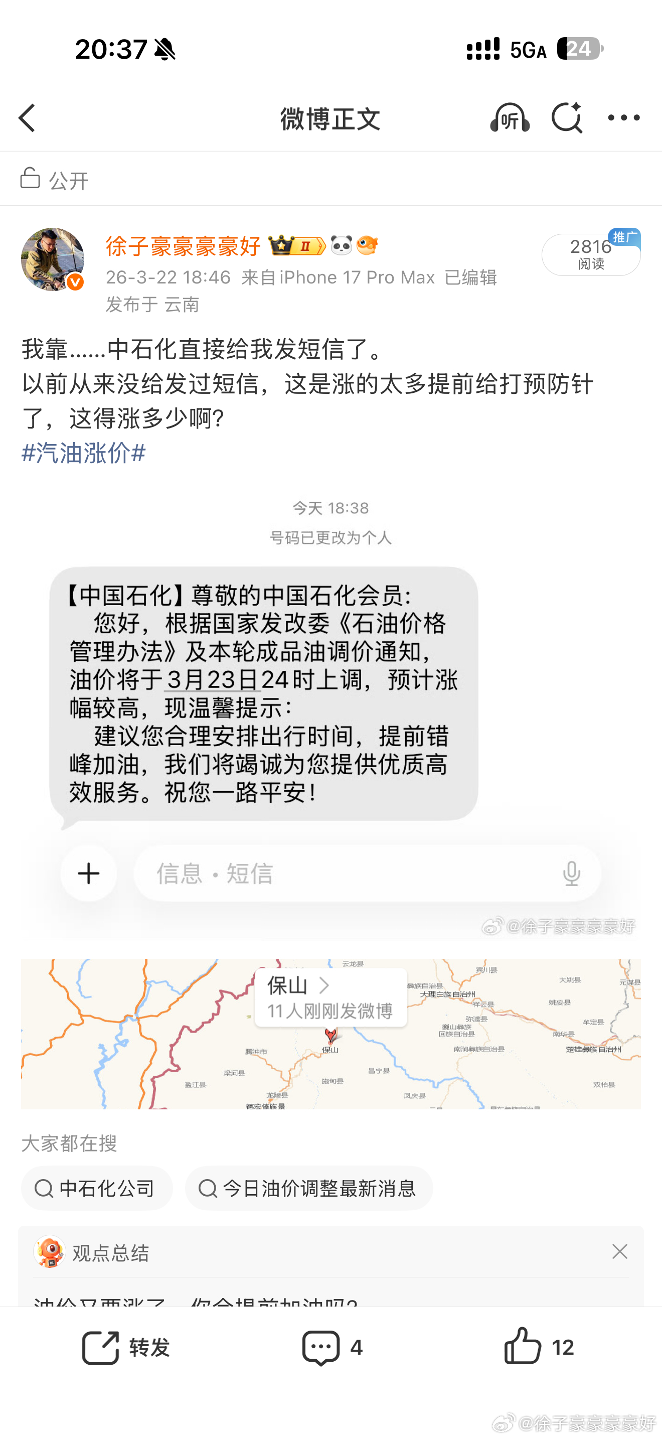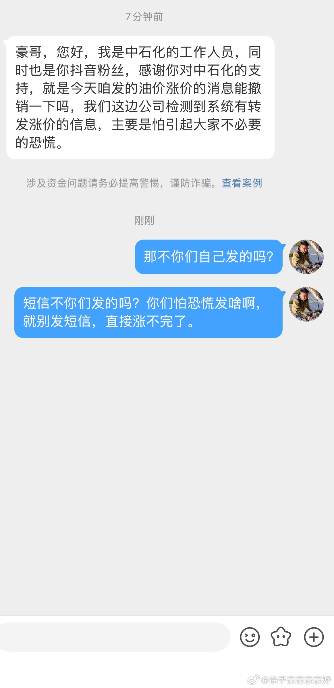这不神经病吗?怕恐慌别发啊,短信发了微博让我删?而且你删谁是啊,全发了。