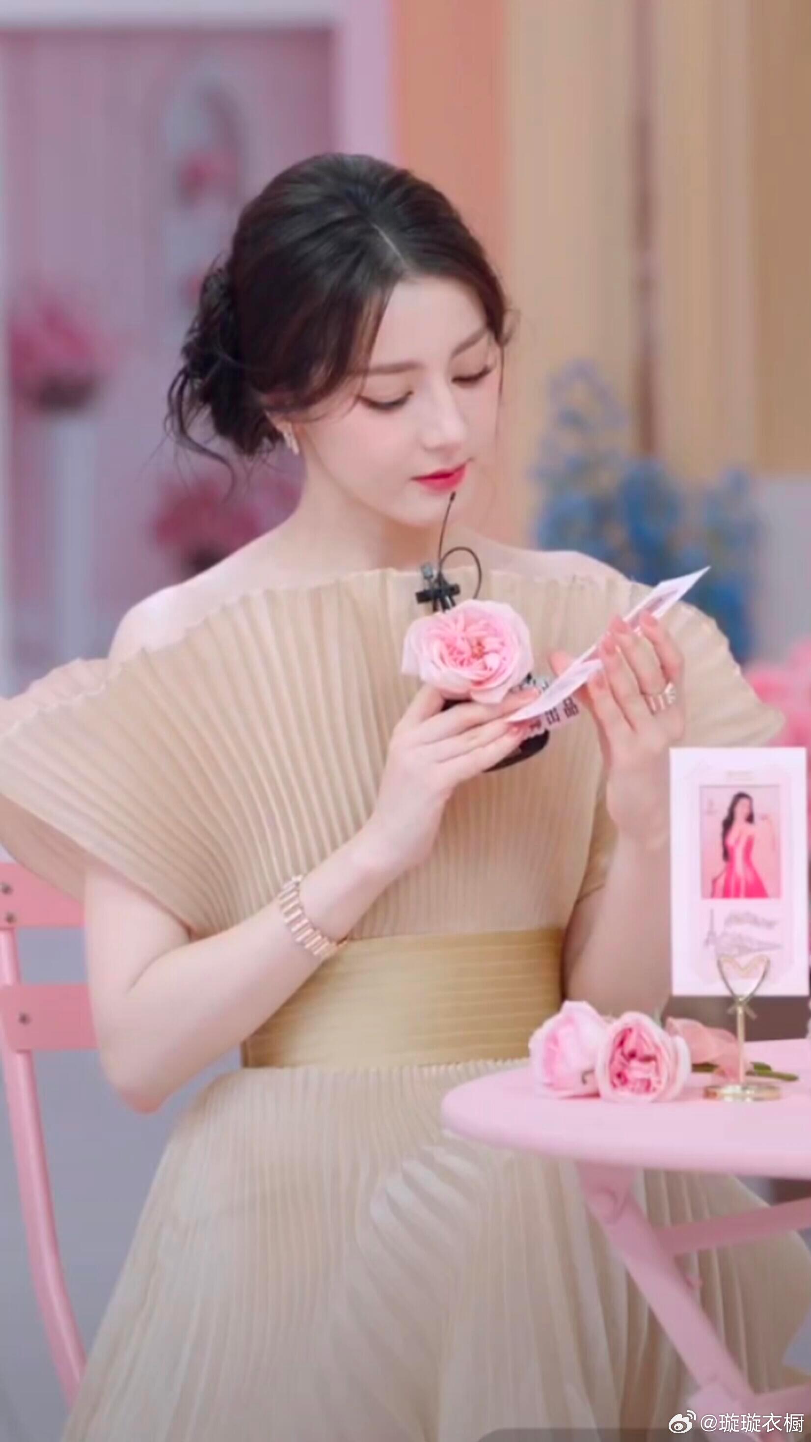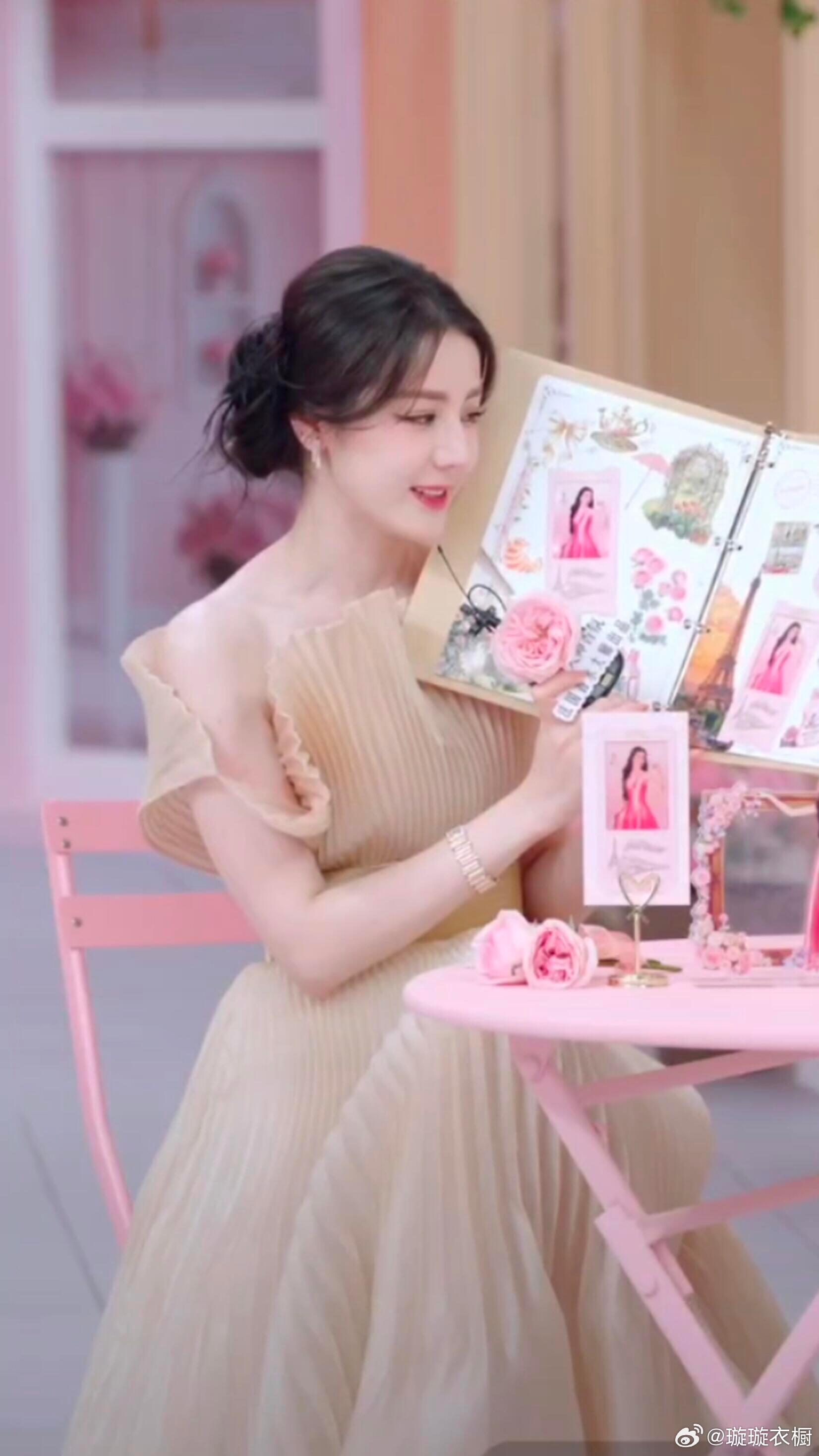 迪丽热巴直播 迪丽热巴美得让人窒息!法式浪漫与甜美兼具,简直是玫瑰园里走出的精灵~