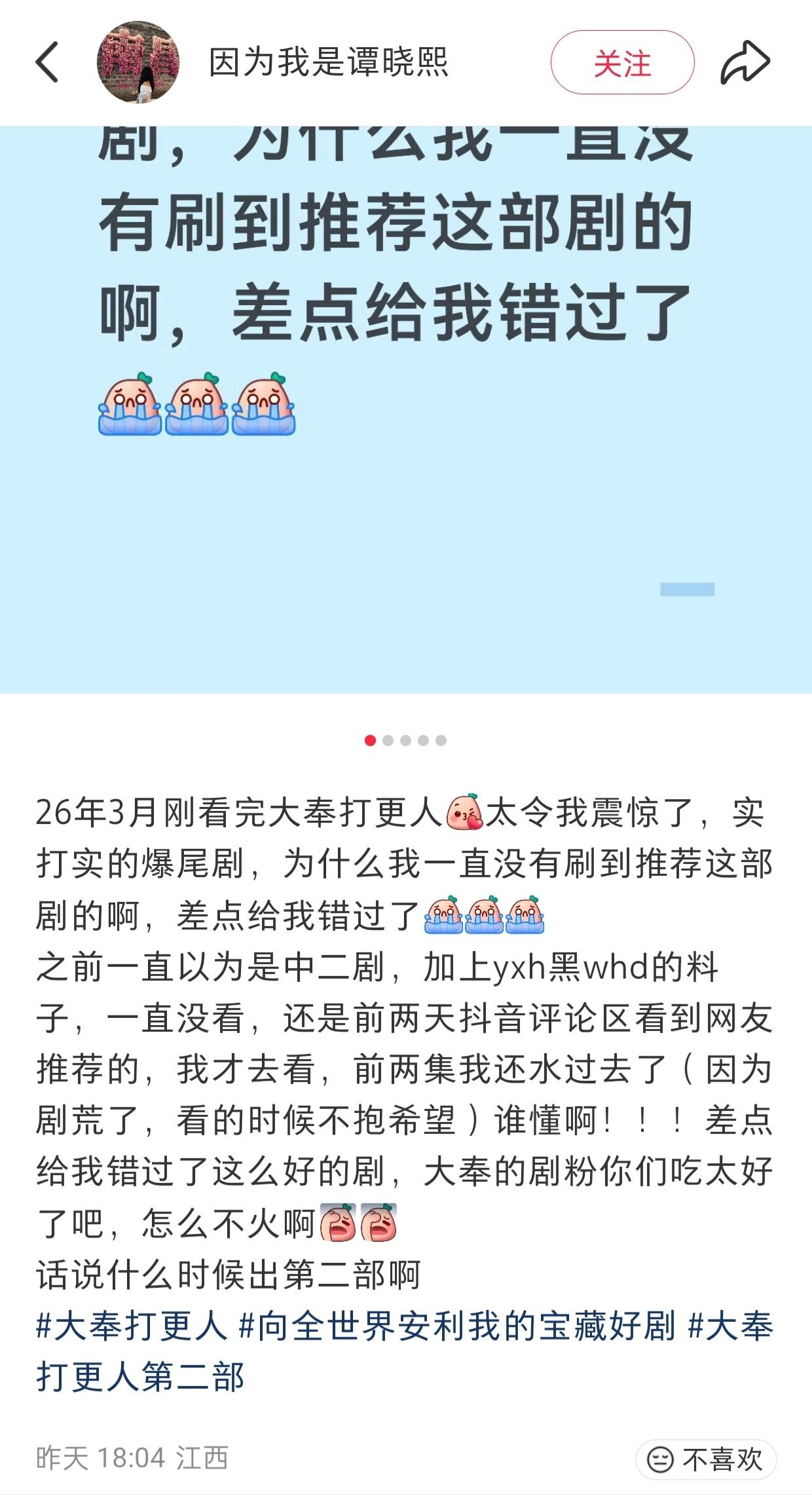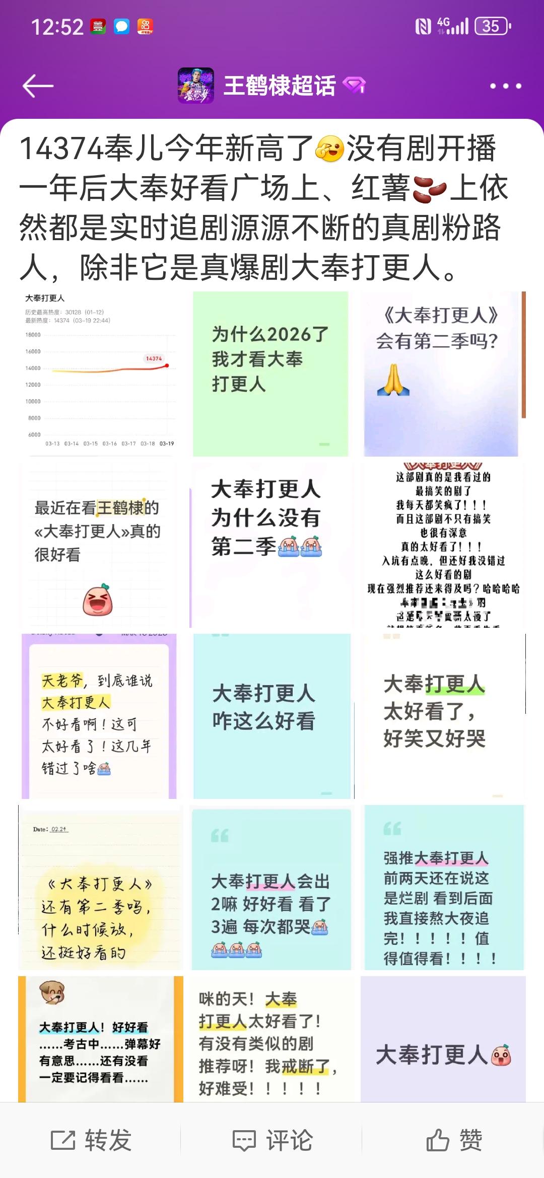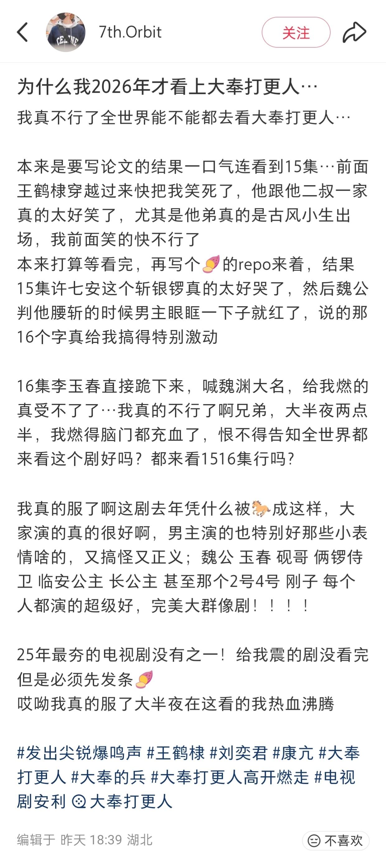 《大奉打更人》这是又迎来了第三个热播期吗? 已经连续两天站内热度破14000了,云合日榜排名也在持续上升。 各平台陆续刷到了大量新入坑的剧粉。截图来自🍠 @王鹤棣_Dylan