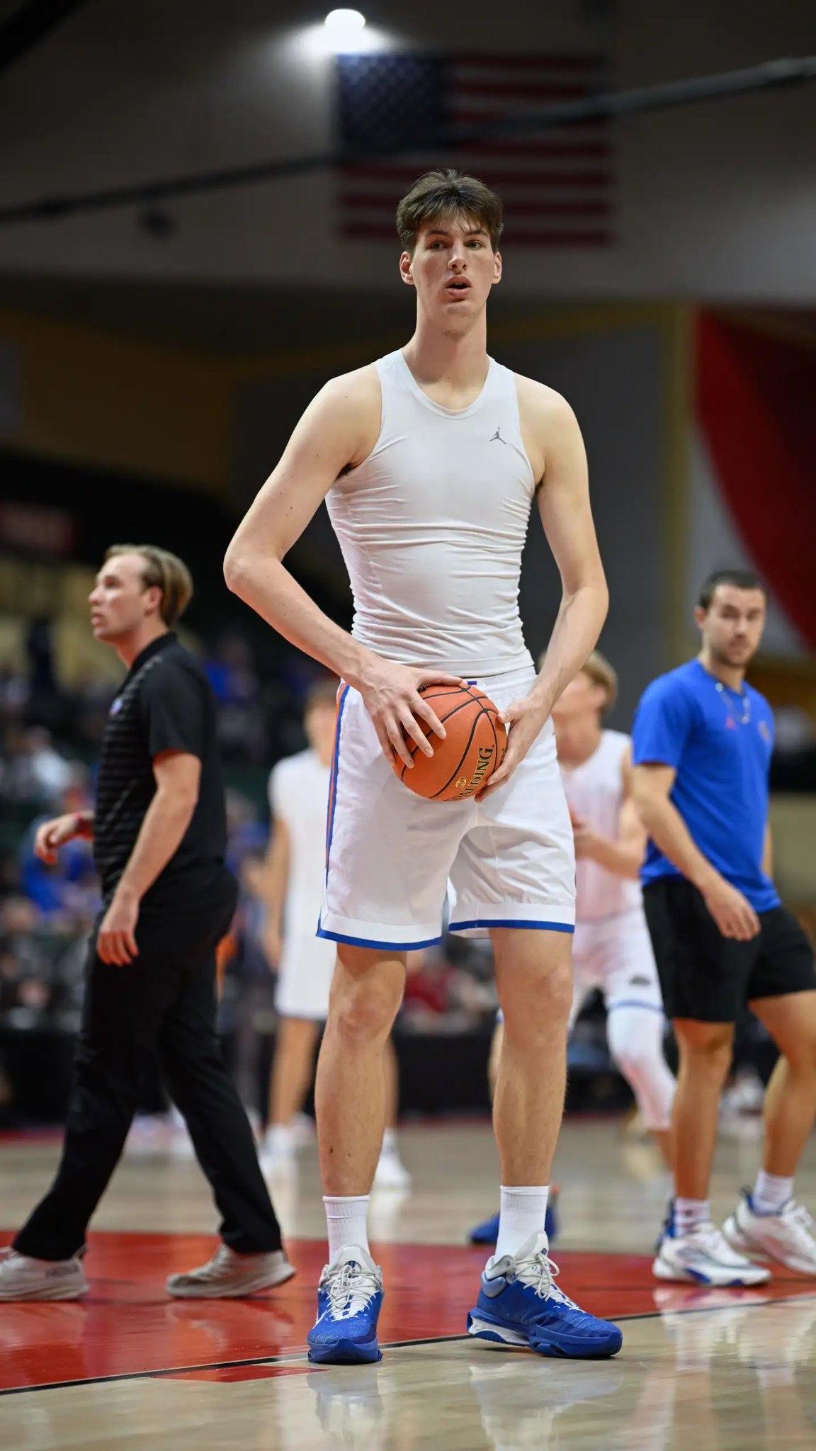 19岁的篮球新秀Olivier Rioux,如今身高已达7英尺9英寸(约2.36米)。根据佛罗里达大学(Florida Gators)官方2025 - 26赛季阵容、ESPN、维基百科以及多家媒体(如Gainesville Sun、USA Today、Fox News)2026年3月的最新报道,他的身高均被记录为7'9" (2.36 m),体重约305磅(138公斤)。这让他成为NCAA大学篮球历史上(甚至在业余和职业级别)登场过的最高球员。他是我心仪的类型。