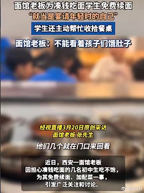 一碗热面或许不值多少钱,却能护住少年的体面和温饱。没有惊天动地的壮举,只是一碗热面、一份善意,却在初春里暖透了所有人的心。愿善良的老板,生意长虹,岁岁安康!小利说事