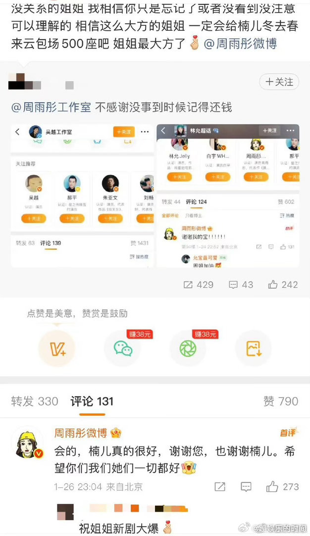 周雨彤给白宇章若楠新剧包场 从工作室澄清到艺人亲力支持,周雨彤和章若楠的互动,把