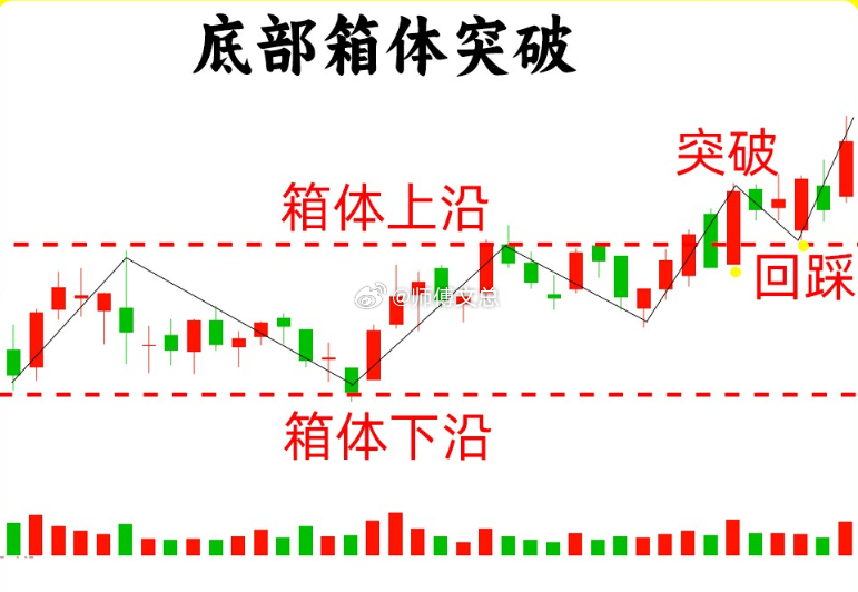 一、底部箱体突破股价在低位箱体震荡,股价接触到箱体上沿就会回调,接触箱体下沿就会反弹,就形成支撑位和压力位。这是主力长时间的吸筹,洗盘走势。把不坚定筹码洗出去,这种箱体横盘的时间往往周期比较长。等股价突破箱体的上沿,并且有效站稳,说明箱体震荡结束,这里说的有效是指股价突破上沿以后,回调不破这个上沿。