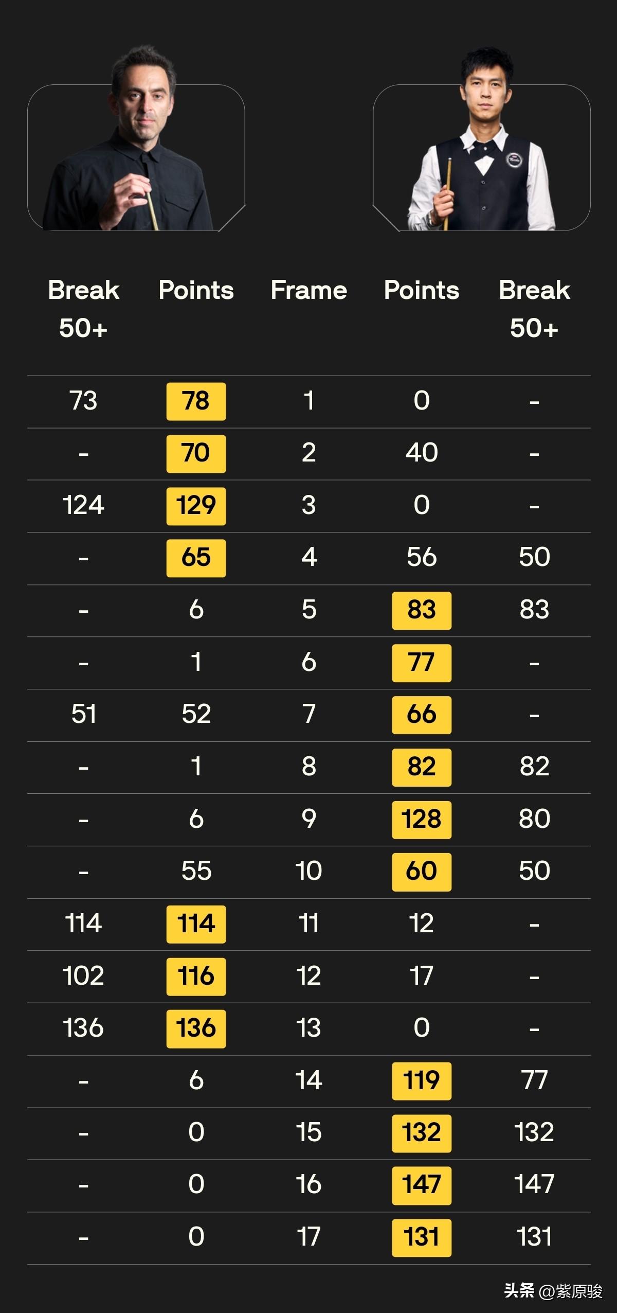 塔猜亚10-7击败火箭奥沙利文,获得世界公开赛冠军,拿到17.5万英镑奖金,世界排名上升到第22,单赛季排名上升到第10。塔猜亚第16局打出147。塔猜亚夺冠,挤掉肖国栋,获得了巡回锦标赛资格。 下午第一阶段的比赛颇富戏剧性,火箭状态起伏太大,连赢4局后连输5局,4-5暂时落后。 晚上第二阶段比赛开始后,塔猜亚再胜一局,相当于六连鞭火箭。之后火箭开始发力,连续打出3杆破百,7-6反超比分。 第14局开始,塔猜亚抓住火箭防守不严谨的机会,拼进中袋红球,拿到42分失误,可惜火箭没有把握住机会,一杆失误断送翻盘机会,塔猜亚及时止损,7-7扳平比分。 第15局,塔猜亚完成本场比赛第一杆破百,8-7再次领先。 领先的塔猜亚越战越勇,失误明显减少。第16局,通过长台上手,完成满分杆147,这也是其职业生涯第7杆147,总比分9-7率先拿到赛点。 第17局,塔猜亚长台上手,一杆致胜,10-7击败火箭,获得世界公开赛冠军。 塔猜亚夺冠,拿到17.5万英镑大奖,世界排名升至第22,单赛季排名来到第10,挤掉排名第13的肖国栋,获得了巡回锦标赛资格。 这也是塔猜亚获得的第二个排名赛冠军。恭喜塔猜亚!