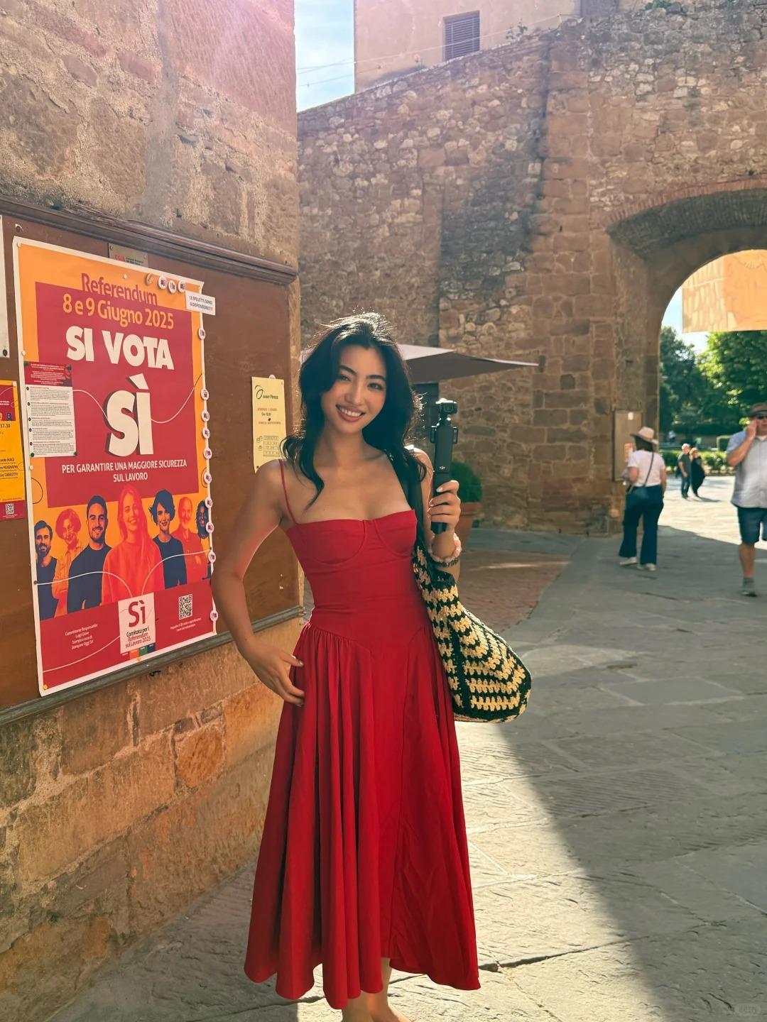 来南意请一定要穿红色好吗❗️❗️真的会被出片效果惊艳到!阳光洒在南意的石板路上,橘色屋顶、蔚蓝海岸、翠绿植被,每一处都是天然背景板,而红色衣物就是这里的点睛之笔。 不管是热烈的正红、温柔的莓红,还是复古的砖红,往镜头前一站,瞬间就能和南意的明媚撞个满怀。不用刻意摆姿势,随便往街角一站、靠在栏杆上,阳光落在衣角,风拂过发丝,咔咔几下都是氛围感大片。 其实出去玩,不用复杂穿搭,带点亮色衣服,配上南意的好天气,怎么拍都美!红色不仅出片,还能衬得人肤色透亮,承包你南意之行的所有好看照片。