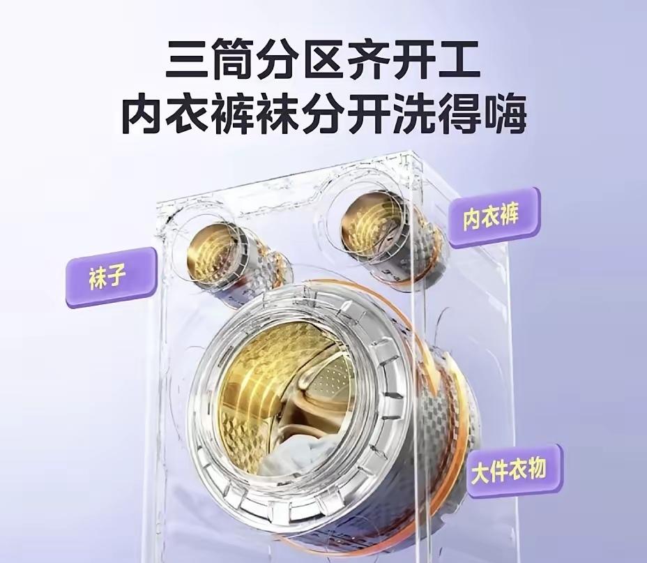 这样选洗衣机不纠结: 1.选滚筒不选波轮 2.选变频不选定频 3.选上排水不选下排水 4.选大容量不选小容量 5.选高洗净比不选低洗净比 6.选自清洁不选空气洗 7.选洗烘分离不选洗烘一体 8.选一级能效不选多级能效 美的洗衣机销量位列三甲,因为美的以质量为基础。以科技创新为核心,做出极致性价比的产品。现在推出的"可爱多",赢得众多消费者的青睐。 美的可爱多正是2026高端智能洗护的绝佳代表。它的三筒分区洗烘设计,直接解决了洗衣的核心烦恼:上层主筒搞定外套、床单等大件,中层小筒专属内衣袜子,下层热泵烘干机同步工作,内衣外套分开洗烘,彻底避免交叉污染,再也不用为混洗问题纠结。 健康方面,医护级杀菌除螨功能直击要害。回南天是细菌螨虫的温床,普通清洗难以根除。可爱多通过中卫安特护级认证,搭载UV紫外线+银离子双重除菌,除菌率达99.99%,除螨率近100%,能深入纤维深层杀灭细菌、脚气真菌,甚至杀灭HPV病毒。贴身衣物、宝宝衣、床品都能洗得干净安心,给全家稳稳的健康守护。