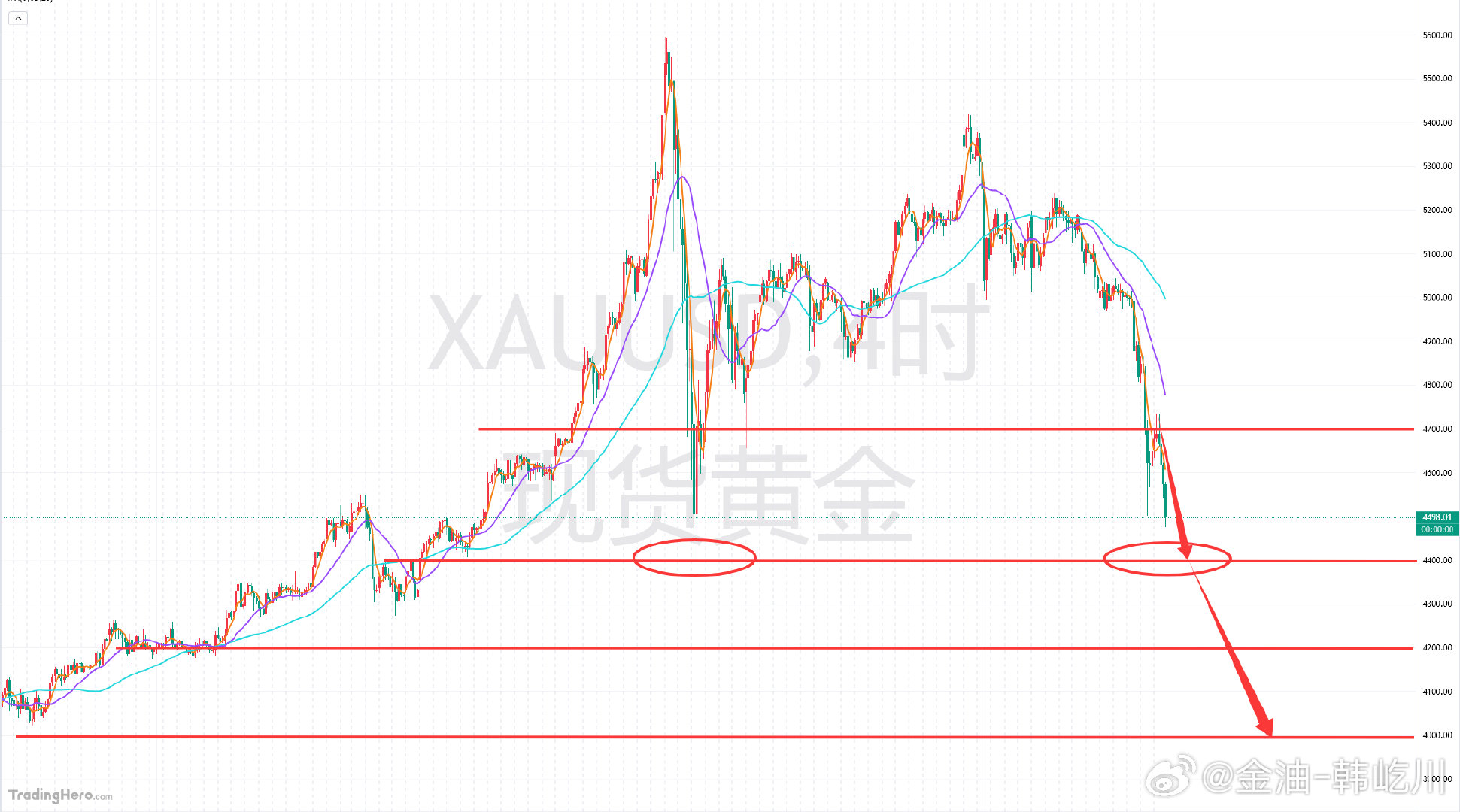 大家还记得老韩周五黄金分析怎么说吗?4500这个底部,还需再探一次,甚至是跌破回至2月份4400低点!现在结果如预期!【前分析点击博文链接查看:网页链接】