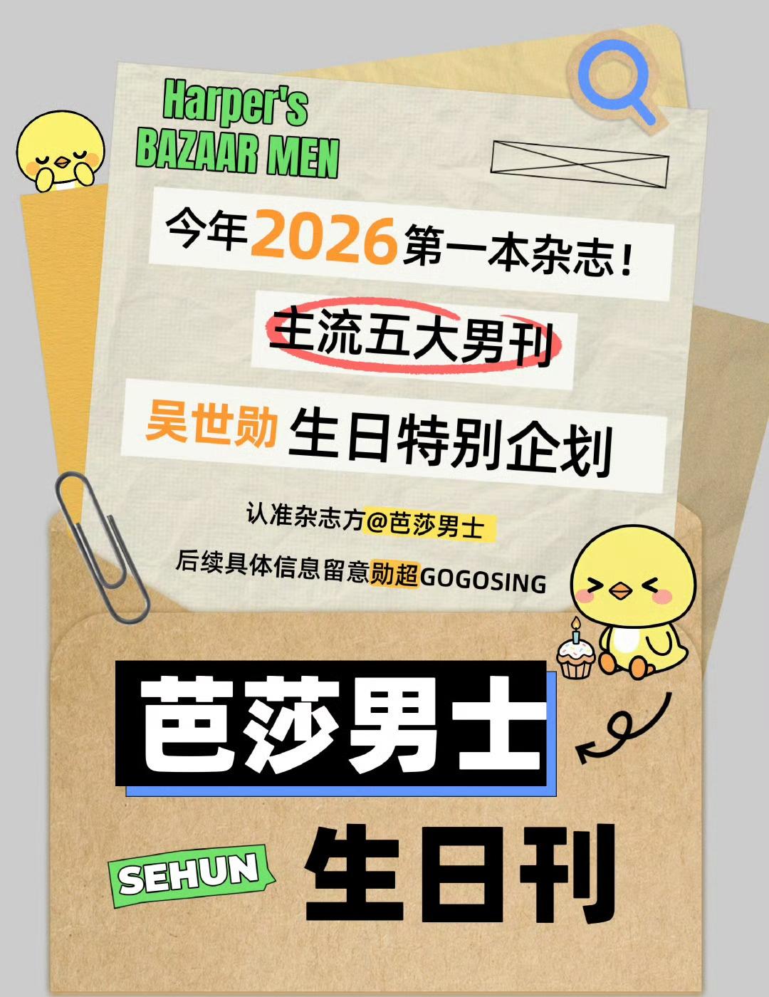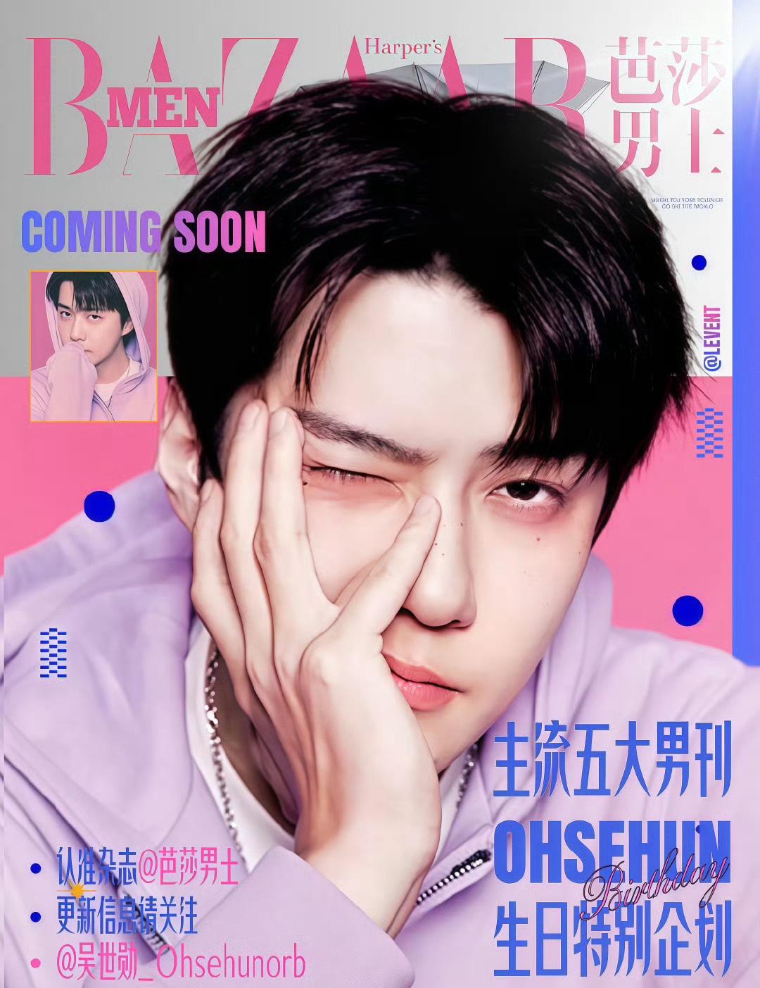 期待这个人气top吴世勋的生日刊 4.1芭莎男士!!!