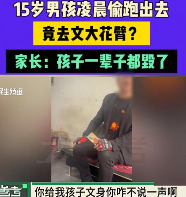 河南濮阳,女子发现15岁的儿子花600元纹了一个大花臂,几乎崩溃:孩子一辈子都毁了,自己不是心疼钱,这钱哪怕孩子拿去玩游戏、吃了,玩了,即使丢了都可以,但是纹身不行。 事情要从一个深夜说起,凌晨一点,一台纹身机低低地鸣响起来,狭小的屋子里,没有父母的叮嘱,没有老师的劝阻,只有一个15岁的少年,和一个收了600块钱、对孩子的年龄视而不见的纹身师。 整整六七个小时,纹身机的针头反复刺入少年细嫩的左臂皮肤,从肩头一直延伸到手腕,一寸都没有停下,直到天快亮,少年才悄悄溜回家,用厚厚的被子把整条胳膊捂得严严实实,之后就躲了起来,整整三天都不见踪影。 徐女士发现儿子失踪后,急得团团,四处寻找,最后在乡下老家的旧院子里,找到了缩在昏暗屋角的孩子,他把头埋在膝盖里,像一团被揉皱的旧报纸,浑身透着慌乱和愧疚。 徐女士心里一紧,一把掀开了孩子盖在胳膊上的被子,当那条布满青黑色纹身的手臂露出来时,她只觉得两腿一软,差点摔在地上,眼泪瞬间就涌了上来。 周围的人都以为她是心疼那600块纹身钱,可只有徐女士自己知道,钱根本不算什么,她从小就给孩子攒着一个梦,希望孩子长大后能穿上军装,堂堂正正地入伍报国,可她清楚纹身是军队明确禁止的,只要有纹身孩子入伍的路就被彻底关死了,就算以后砸重金去洗纹身,胳膊上也会留下一道道丑陋的疤痕,那些疤痕是终身的,孩子的军旅梦再也圆不了了。 在徐女士的追问下,孩子才慢慢交代了事情的来龙去脉,原来他早就跟不上学校的课程,心里一直想辍学,那天路过一家纹身店,看到门口的海报写着纹身原价九百多,拼团活动只要600块就能搞定,一时冲动就走了进去,一开始他只是想纹个半臂,可纹着纹着不知哪根弦断了,就跟纹身师说别停,最后一路纹成了覆盖整个左臂的大通臂。 徐女士这才知道,那家纹身店专门盯着这些半大的孩子,晚上偷偷营业,从不主动询问孩子的年龄,也不查身份证,明摆着就是瞄准了这些懵懂冲动、不懂事的少年,赚这种黑心钱。 她压着满心的怒气,去找纹身店要说法,可纹身师却一脸无所谓,靠在椅子上刷手机,连头都没抬,老板更是两手一摊,把责任推得一干二净,说孩子是自己要纹的,他没强迫也没权力查身份证,不知道孩子没成年。 看着对方这种死猪不怕开水烫的架势,徐女士气得浑身发抖,却什么也没谈拢,只能带着一肚子火气离开了纹身店,可让她更寒心的还在后面,当天下午她在儿子的手机里翻出了一段视频,视频里,那个纹身师语气笃定,毫无顾忌地教唆孩子,让他回家给父母跪下,就说纹身是自己非要纹的,跟老师没关系,如果父母还要闹,就直接离家出走,拿自己的命去逼父母撤销投诉。 这段视频让徐女士一整夜都没合眼,她没想到这个成年人不仅赚孩子的黑心钱,还故意教唆孩子对抗父母,甚至拿孩子的命当筹码,这已经不是简单的商业纠纷,而是在毁一个孩子的未来。 第二天一早徐女士带着电视台的记者,再次来到纹身店对质,可店里却大门紧闭,早已人去楼空,老板提前得了消息早就跑了。 最后只能由市场监管部门介入调查,徐女士的投诉,至今还没有明确的答案,纹身店关了,老板跑了,可孩子胳膊上的纹身还在,那些青黑色的墨迹,不会因为行政调解就消失,后期的激光洗纹,不仅要花很多钱,还会给孩子带来新一轮的疼痛,留下终身的疤痕。 有人说孩子自己冲动不懂事,家长也有疏忽,双方都有责任,这话确实不假,但不能因为这样,就忽略了那个纹身师的过错,他明明能看出孩子是未成年人,却选择夜间营业、不查身份证,事后还教唆孩子,每一步都是刻意的盘算不是疏忽。 600块钱对成年人来说可能不算什么,可对一个15岁的少年来说,却换来了终身的遗憾,也让一位母亲的心血和孩子的梦想,彻底碎了。