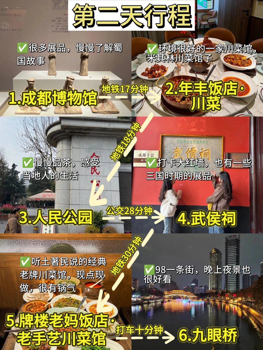 2⃣️:成都博物馆→年丰饭店→人民公园→武侯祠→ 牌楼老妈饭店→九眼桥