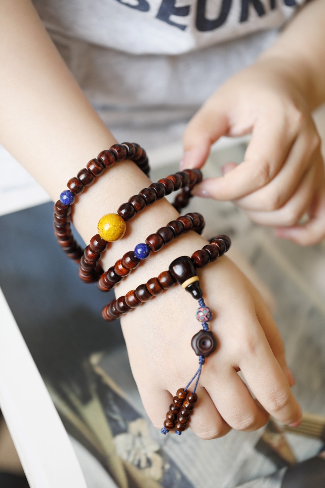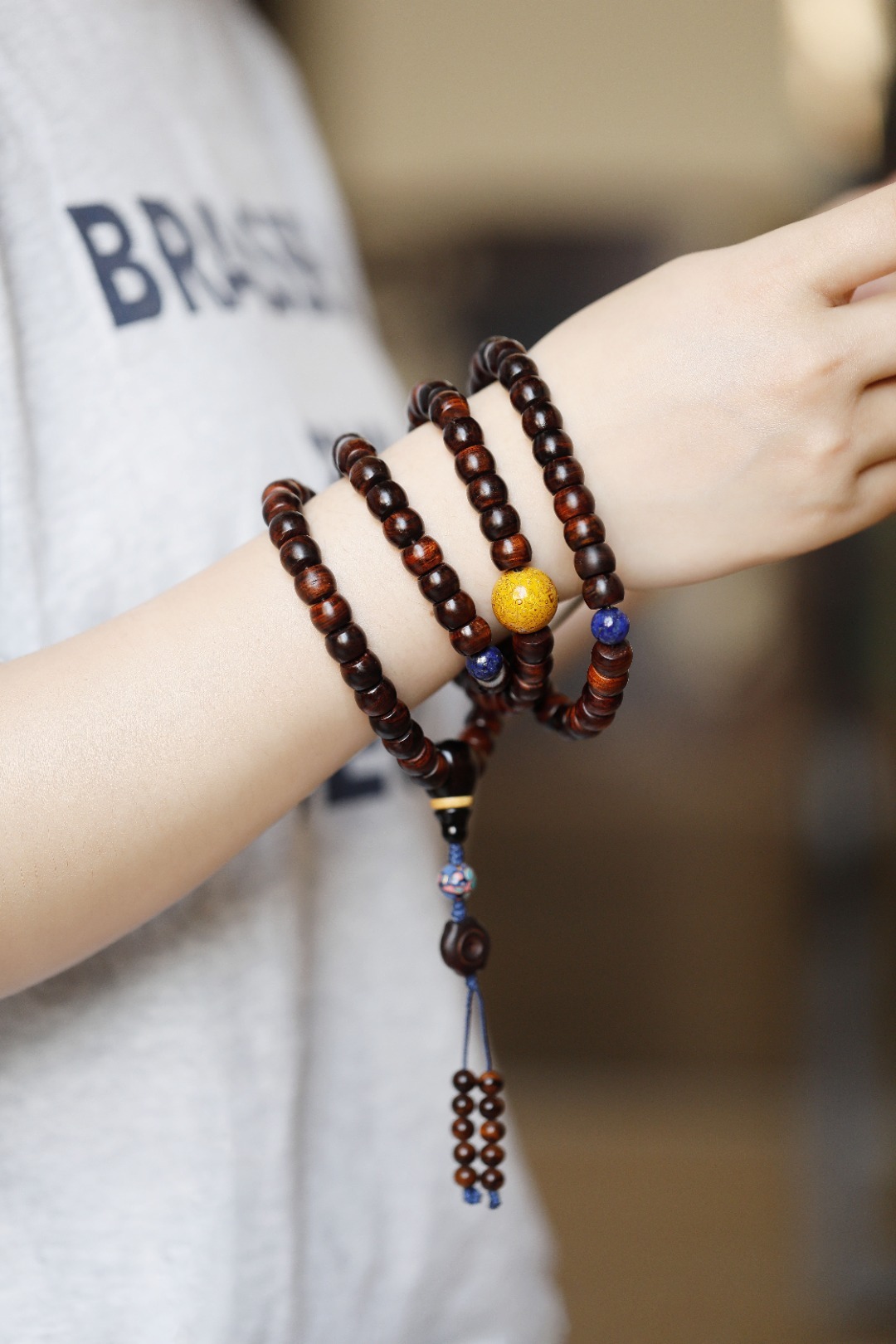 原创搭配设计,高贵风雅,色泽深褐,降香味清闻;绕于腕上,百搭且精致。