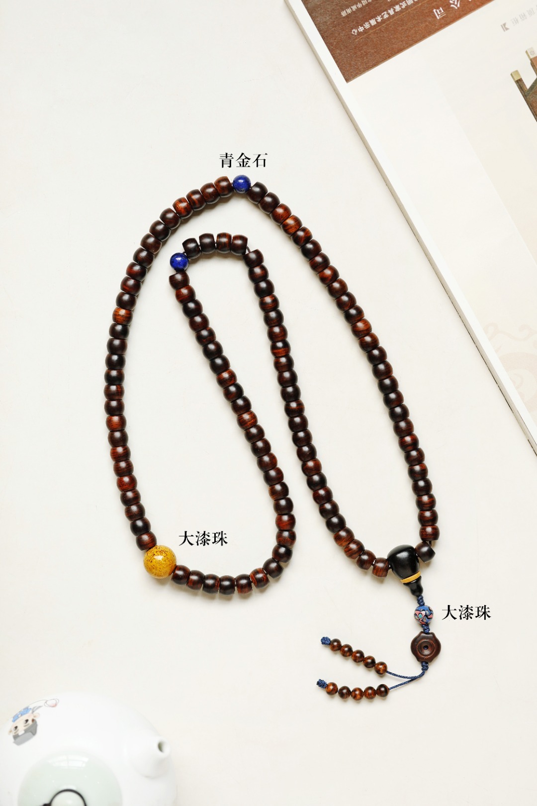 配件:大漆珠、青金石 海黄 原创【灵芸】7x9mm 108颗 手串