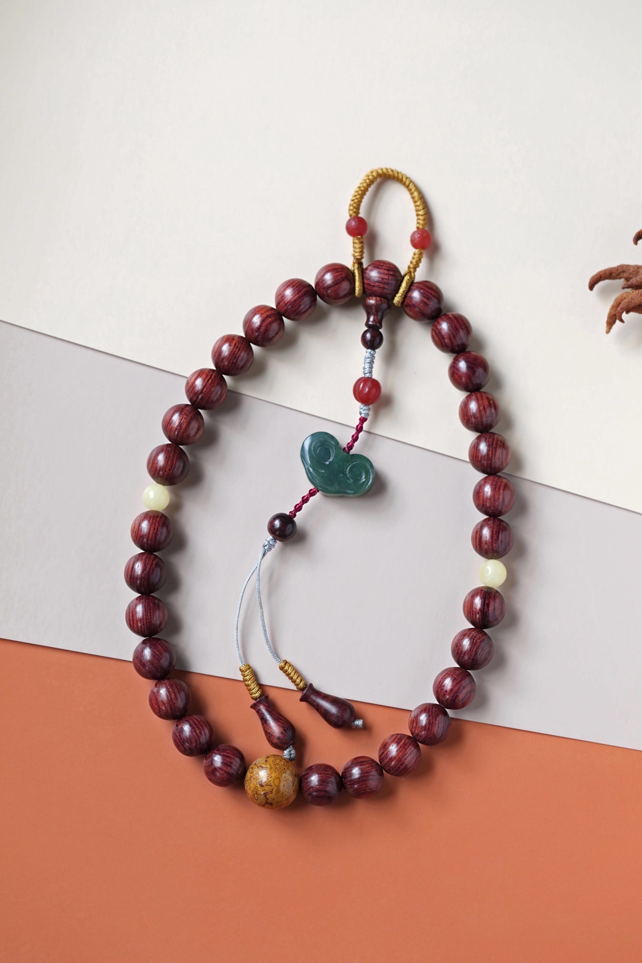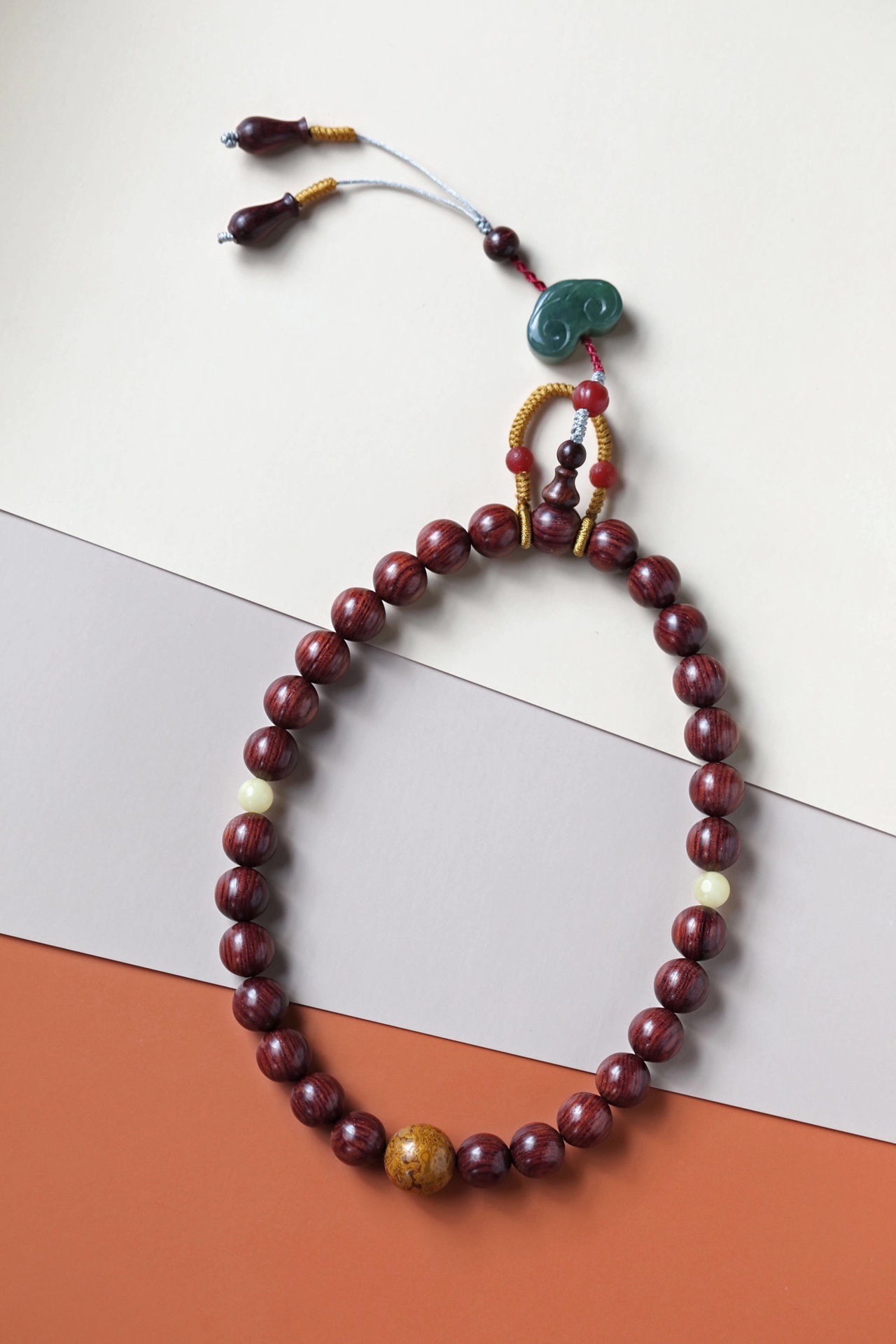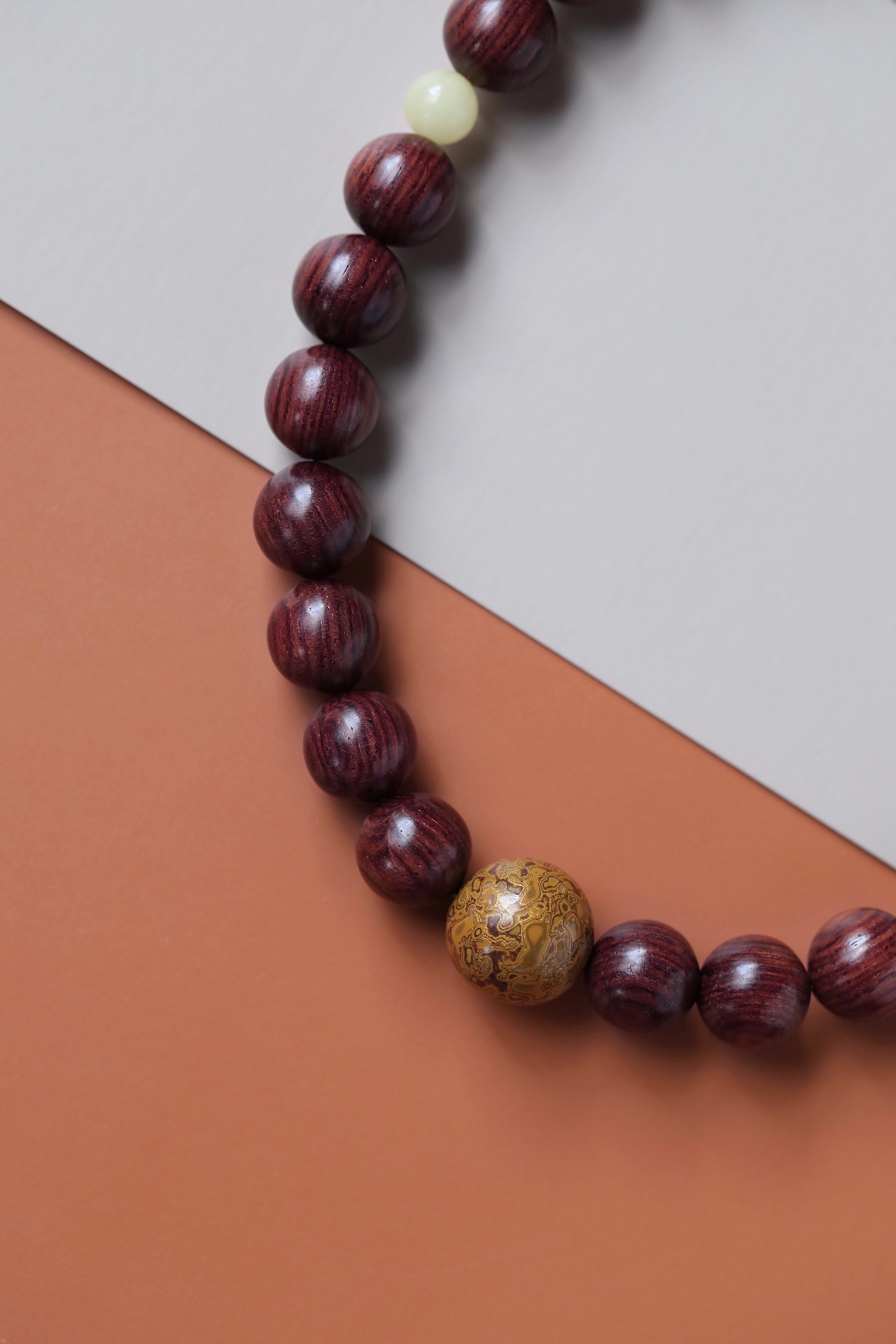 配件:大漆、蜜蜡、碧玉、玛瑙 约36g 海黄『念汐』12mm29颗持珠