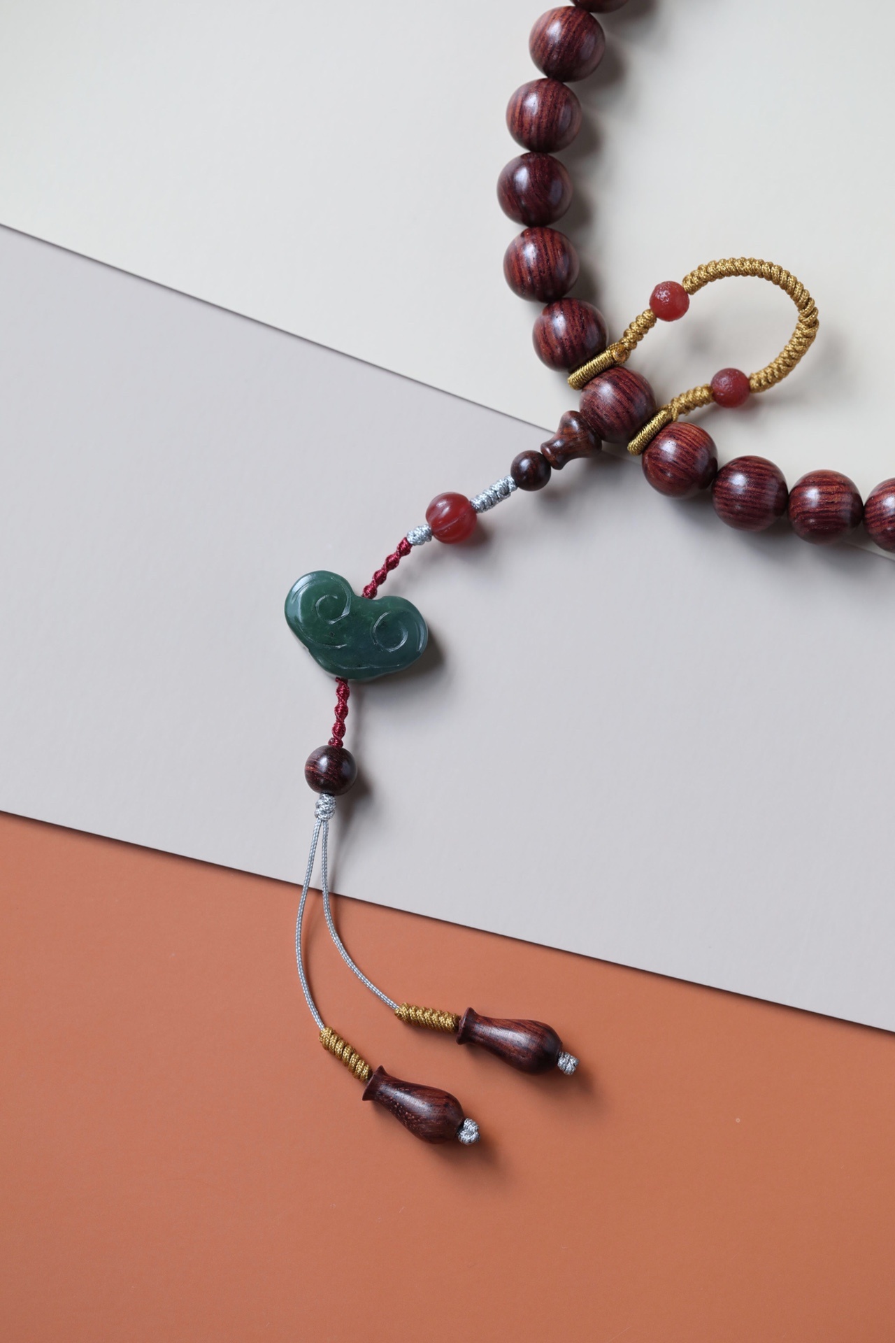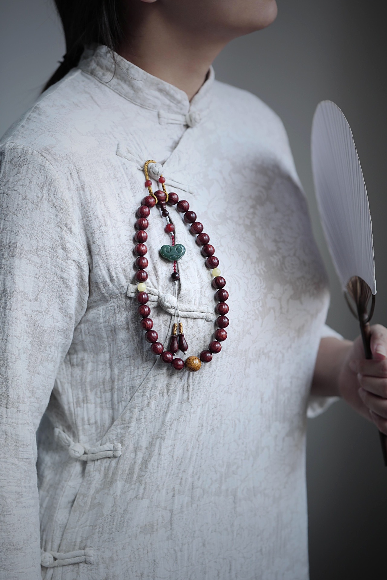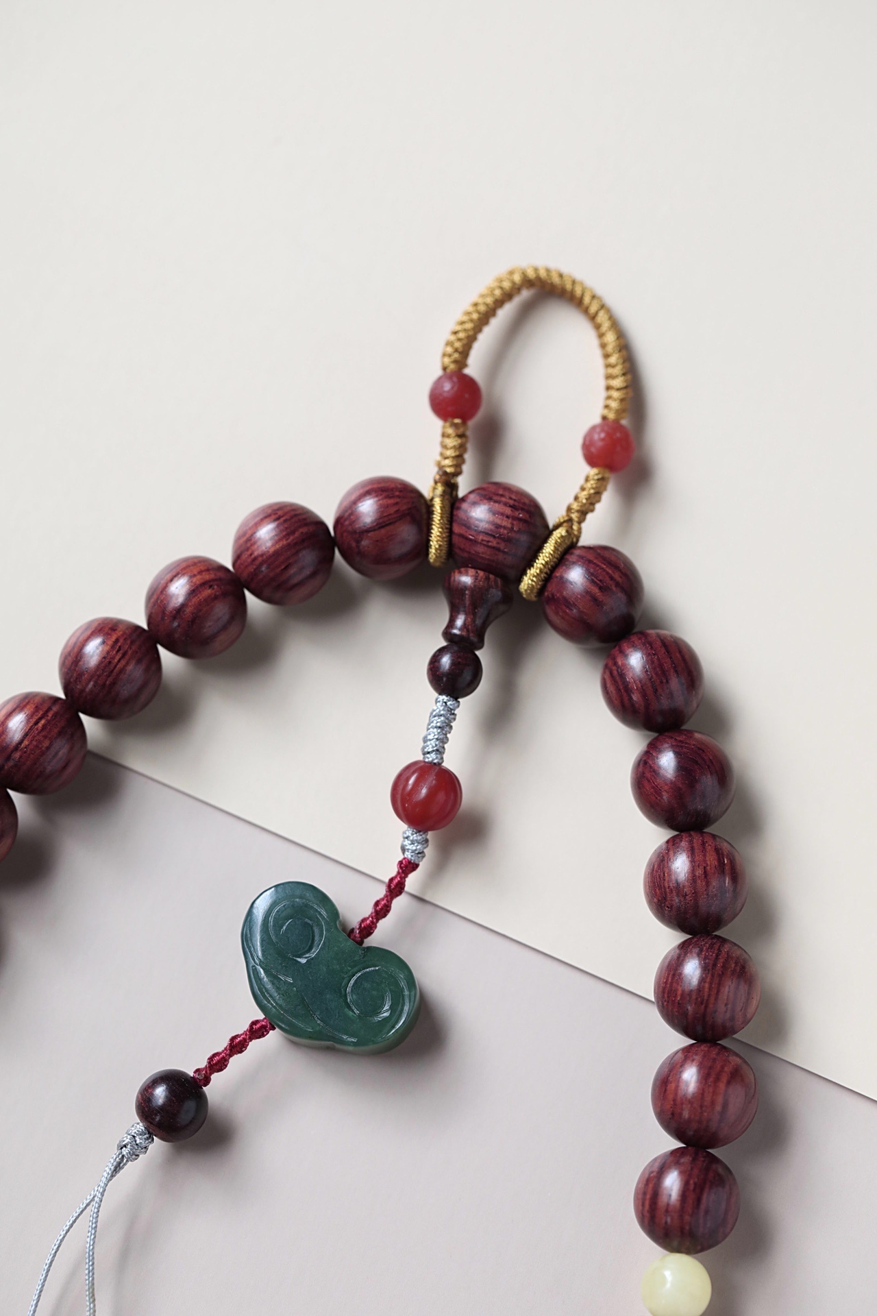 配件:大漆、蜜蜡、碧玉、玛瑙 约36g 海黄『念汐』12mm29颗持珠