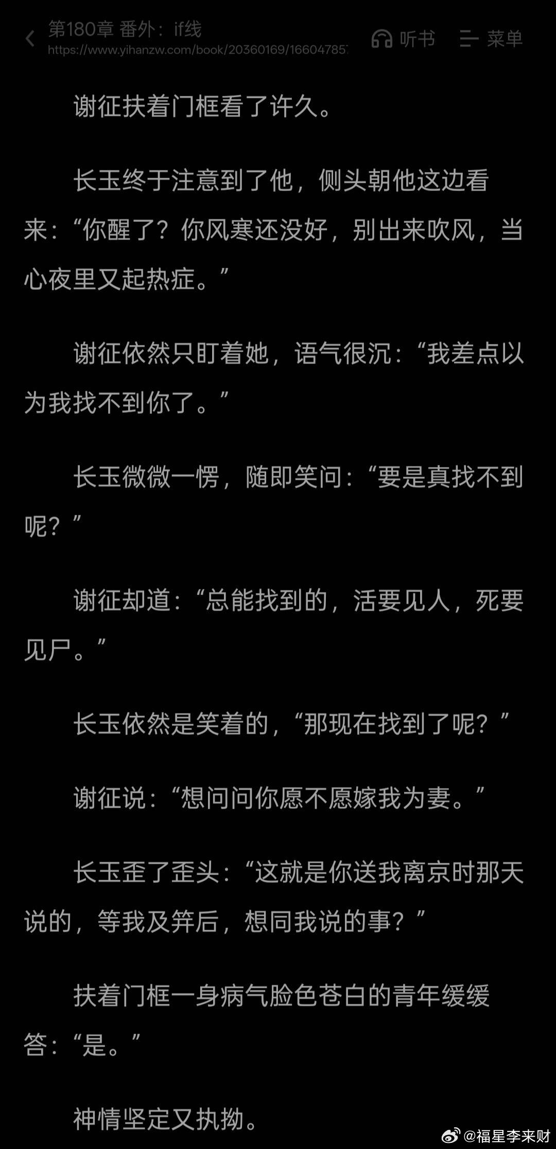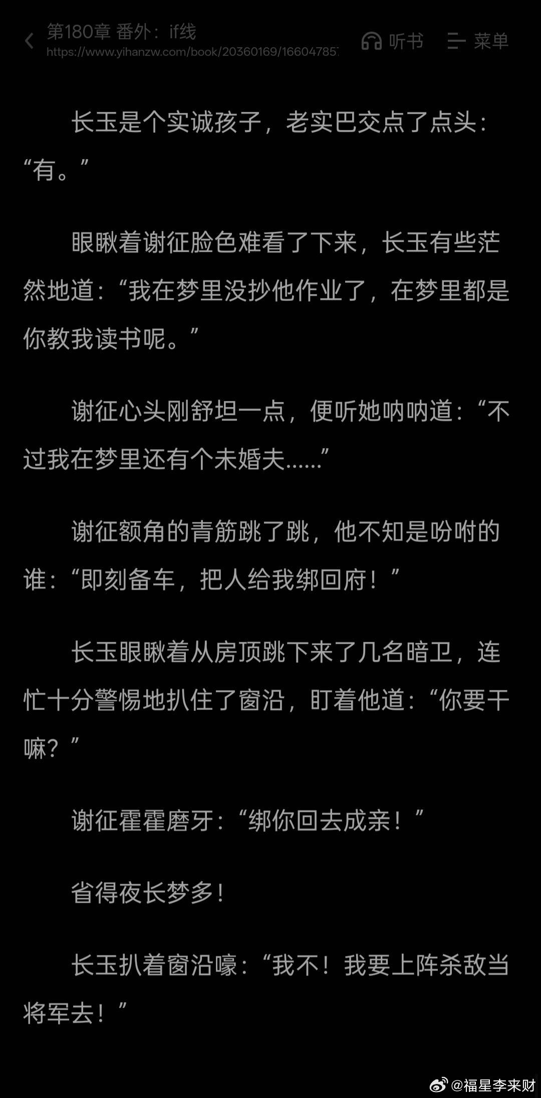 逐玉if线美好的让人想哭魏、谢、孟三家都有很好的结局,父辈都娶到了自己想娶的人。征玉是青梅竹马,谢征一如既往的爱吃醋,长玉的梦想还是上阵杀敌当将军