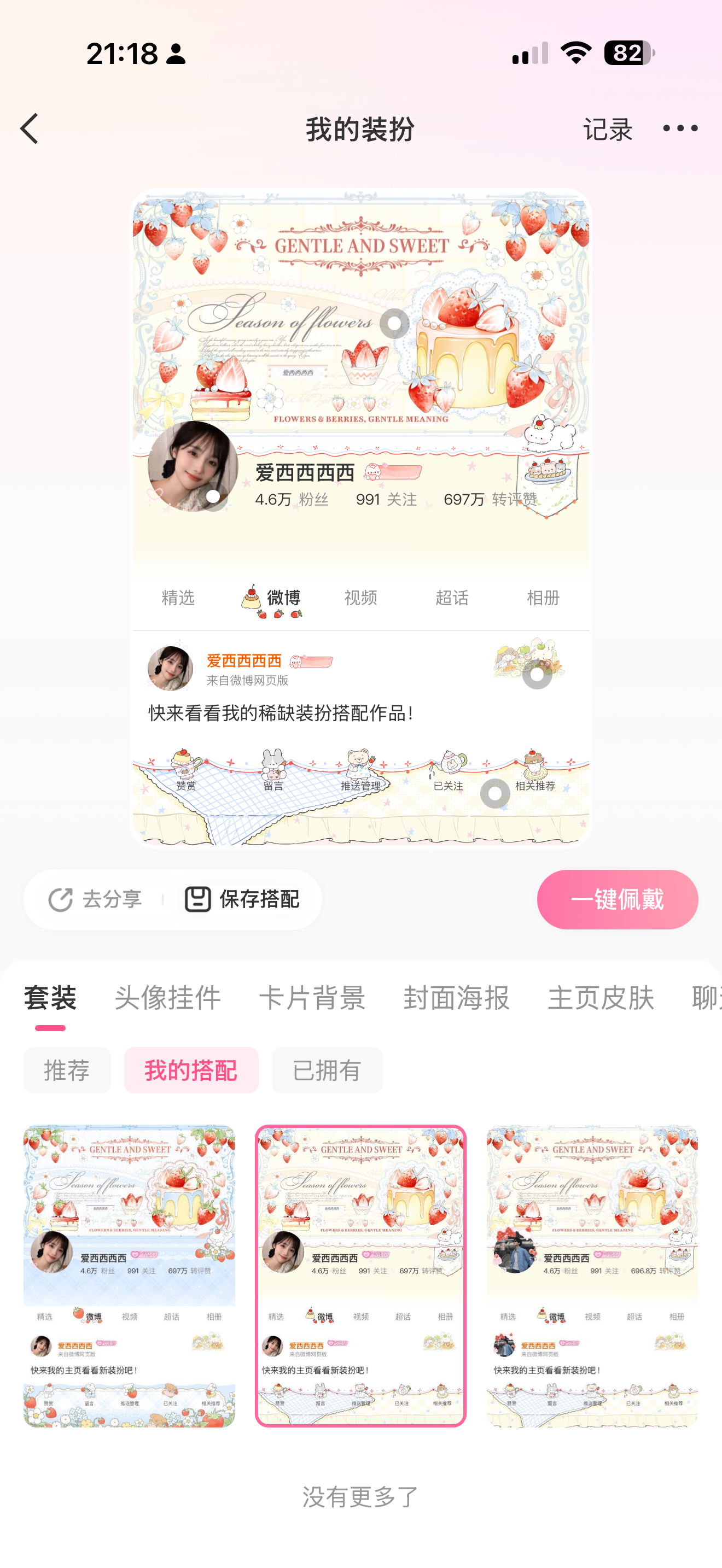 这个装扮搭配保存好方便!但是为啥不能删掉已保存的搭配