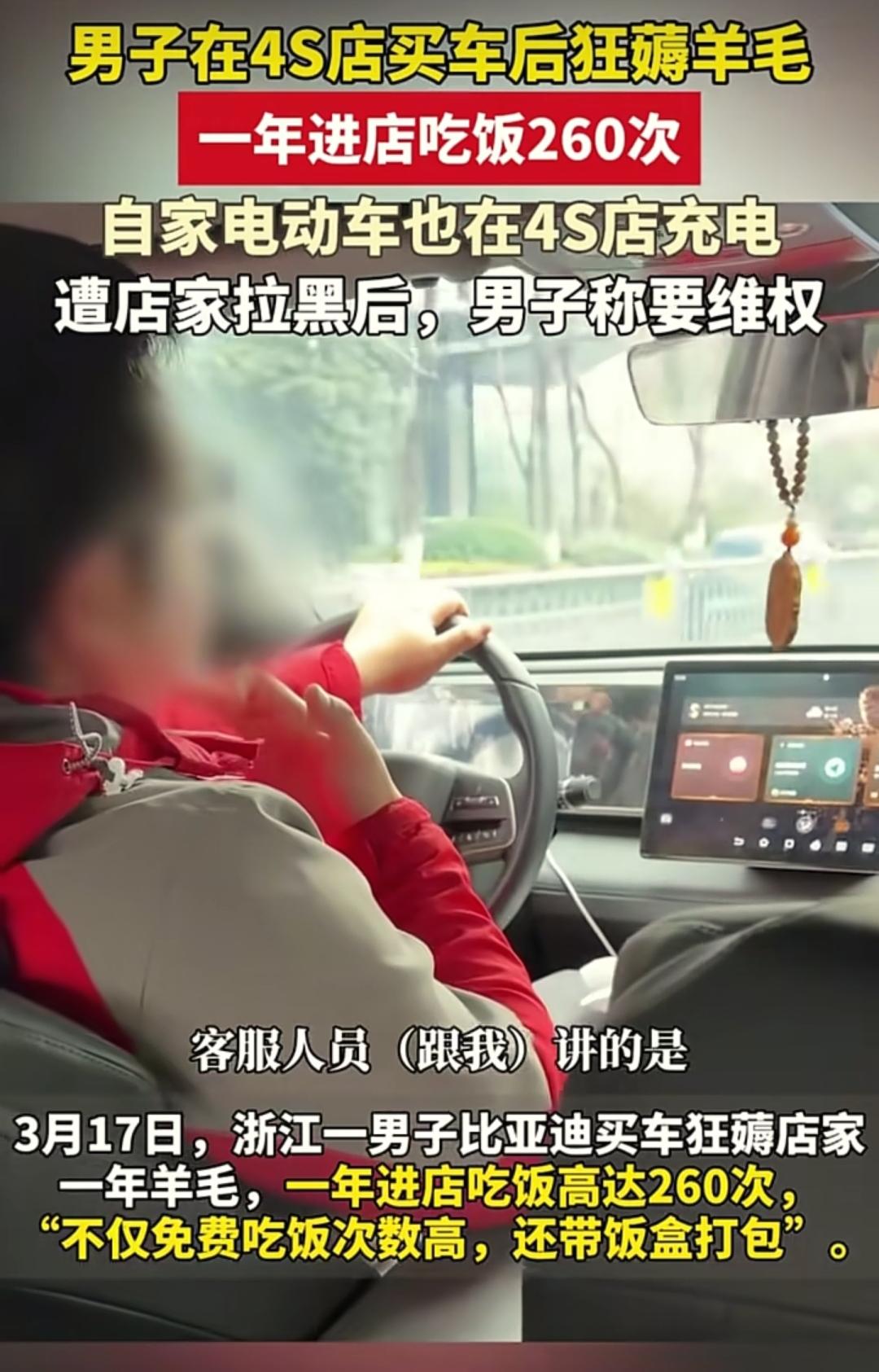果然如我所料! 比亚迪4S店薅羊毛的庞先生, 还真是开网约车的!时间自由的优势,愣是被他用在了掐着饭点蹭福利上, 一年260多顿的到店频率, 比上班族打卡还勤快, 这股子“执着”真是让人开了眼。 4S店的客户免费餐食, 本是品牌的暖心福利, 却被他当成了专属食堂, 甚至还打包、蹭充电, 把门店资源薅到极致,彻底越界了。 说到底, 免费福利从来不是无底线索取的借口,商家的善意该被珍惜, 而非透支。这位庞先生看似占了小便宜, 实则丢了分寸, 不仅搅乱门店运营, 更让其他正常车主的福利体验受影响,这种薅羊毛的方式, 真的太掉价。 别让一己之私, 毁了大家的福利, 这是最基本的分寸感。 你觉得面对这种无底线蹭福利的行为,商家该如何守住服务的边界?