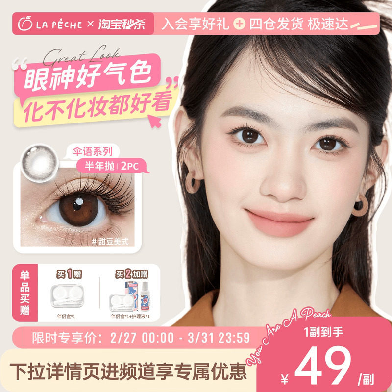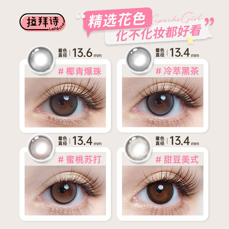 拉拜诗美瞳半年抛伞语2片自然水隐形眼镜