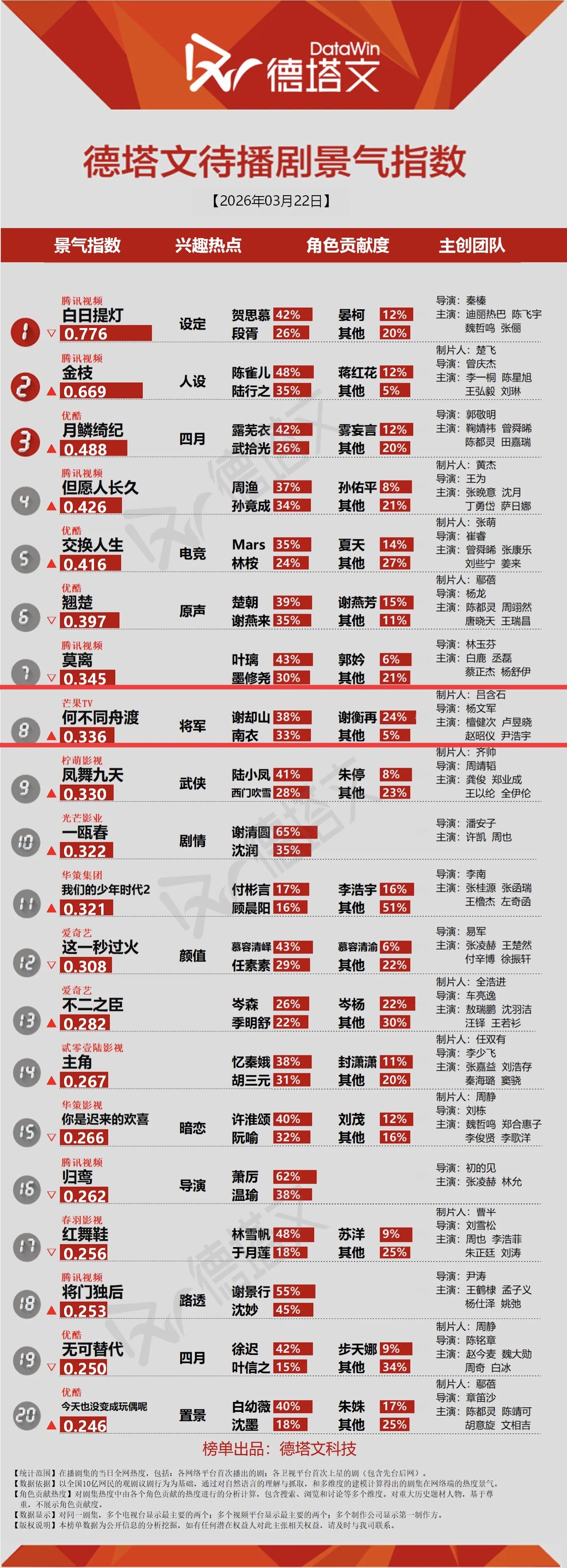 好久不见,我的《何不同舟渡》3月22日德塔文待播剧景气指数檀健次 ‖檀健次谢却山