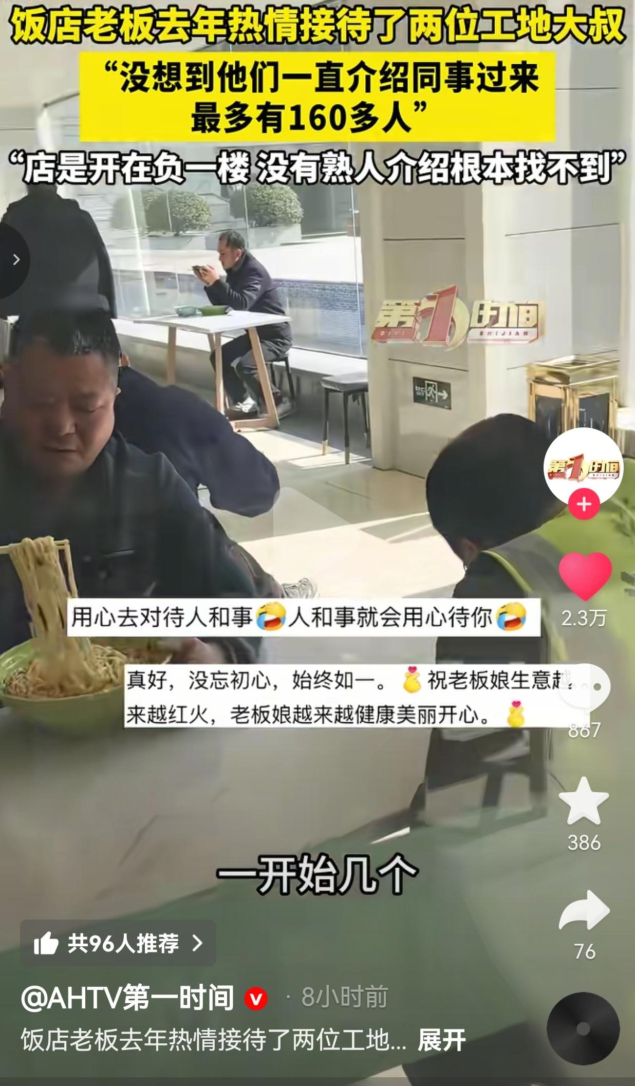 破饭馆藏负一楼,却被160个工人挤爆!老板娘一句话,暖哭全网! 谁能想到,一家藏在负一楼、没熟人介绍根本找不到的小饭馆,居然靠去年接待的两个工地大叔,硬生生拉来了160多个回头客?这哪是做生意,这是把人心焐热了啊! 去年,江苏无锡这家藏在负一楼的小饭馆,来了两个穿工装、浑身是灰的工地大叔。 他们站在门口扭扭捏捏,看着满店的白领,不好意思往里迈——怕自己身上脏,怕被人嫌,怕消费不起。 老板娘周女士一眼就看出来了他们的窘迫,赶紧笑着迎上去:“大哥,大大方方进来吃,没事的!里面也能走,不用排队!” 她没嫌他们脏,没赶他们走,反而像招呼自家人一样,给他们找位置、盛饭盛菜。就这一句暖心的话,两个大叔记到了现在。 今年过完年,他们开始一个接一个地往店里带同事:今天带3个,明天带5个,最多的时候,一下子来了160多号工人! 本来冷清的负一楼,现在天天坐满穿工装的大叔,连白领都跟着来蹭这股热乎气。老板娘说:“我就是做了该做的事,没想到他们记这么久。” 提醒一句:善待每一位劳动者,就是善待我们自己。 网友看到后评论说:“看哭了!我们工地人最怕的就是被人看不起,老板娘这一句“大大方方进来”,比给我免单还暖!” 也有的网友说:“这才是生意的根!你把人当人看,人就把你当家人!我要是在无锡,必须去给老板娘捧个场!” 还有的网友说:“160多个人!这就是最朴素的报恩!你给我一分暖,我还你一片天!” 也有的网友说:“这才是真正的“流量密码”!不是靠炒作,是靠良心!” 现在多少店,装修得花里胡哨,眼睛却长在头顶上:穿得朴素点不让进,点得便宜点甩脸子,连农民工进个门都要被打量半天。 可这家店偏不! 老板娘没把人分成三六九等,没觉得穿工装的就低人一等,她就认一个理:来吃饭的都是客,都得被好好对待。 你以为这是傻?这才是最聪明的生意! 那些大叔不是傻子,谁真心对他们好,他们就用脚投票,用最实在的方式报恩——把身边所有的工友都带来。 160个人,不是数字,是160份被尊重的心意,是160次“你对我好,我就对你更好”的双向奔赴。 别跟我扯什么商业模式、流量玩法,最牛的生意经,从来都是四个字:将心比心! 虽然这是一件小事,却照出了咱们最缺的东西:人情味。 我们总说生意难做,总说流量难求,可忘了最根本的道理:你怎么对别人,别人就怎么对你。 这家店藏在负一楼,没有显眼的招牌,没有网红的炒作,可它有最珍贵的东西——对每一个普通人的尊重。 两个工地大叔的报恩,不是偶然,是善良的回响。你给别人留一扇门,别人就会给你铺一条路。 这才是咱们中国人最珍贵的底色:你敬我一尺,我还你一丈;你暖我一次,我记你一生。 最后,我想说的是:把人心焐热的店,再偏都能火;把善良当回事的人,再穷都能赢!