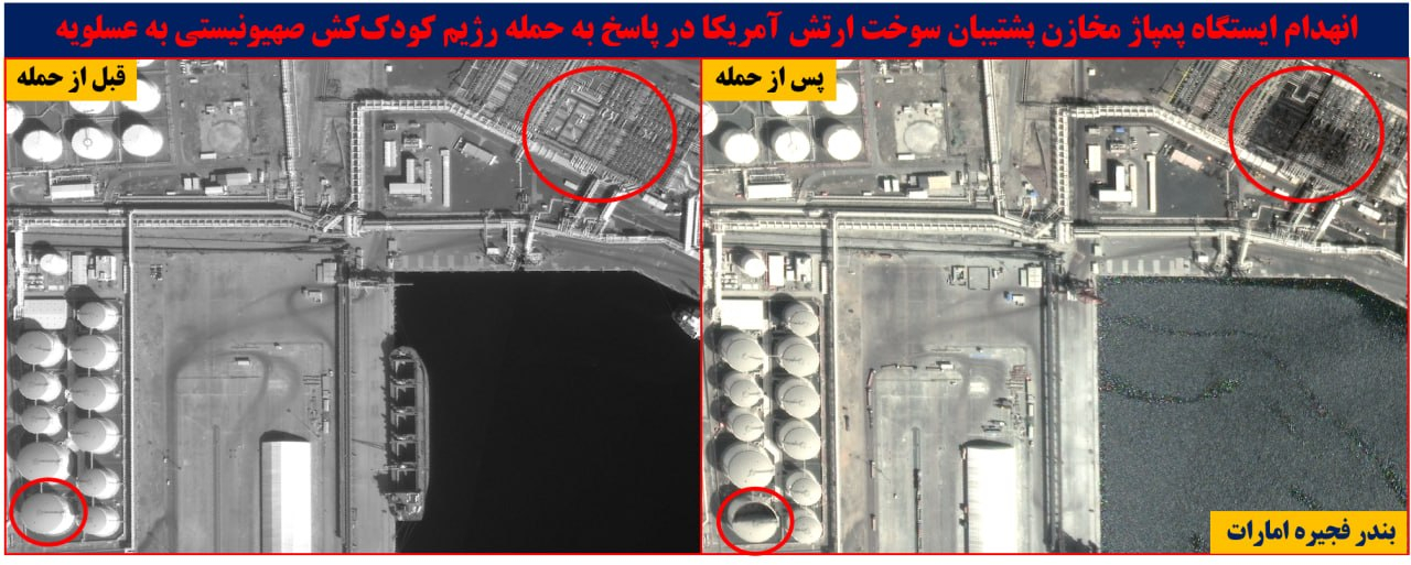 🔻梅尔通讯社和法尔斯通讯社发布了新一批检验伊朗打击效果的卫星图片。🔻包括塔努拉角炼油厂的燃料供应线、延布炼油厂的燃料供应线、鲁韦斯炼油厂的备用燃料储罐、富查伊拉港的燃料泵站和备用燃料储罐,以及美军拉赫巴基地的数据中心及备用信息系统、TPS-75 预警雷达、拉法哈基地的 FPS-117 预警雷达等等。伊朗导弹绕过以色列拦截弹伊朗媒体称伊官员提出停战六项条件海外新鲜事中东现场直击