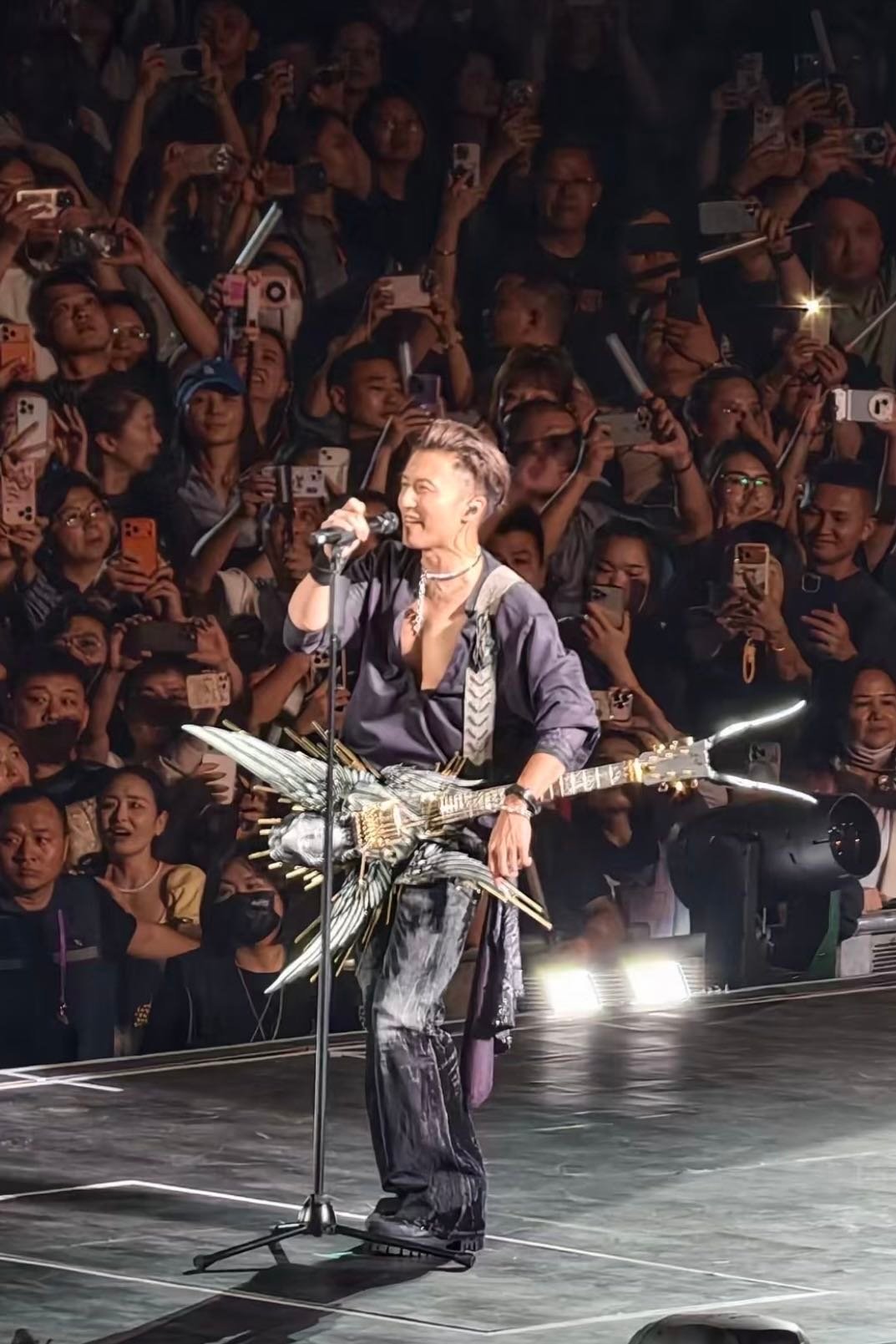谢霆锋演唱会 环绕式飞船、多点舞台、机械传送带——他把体育场变成科幻片现场。为让你看清表情,他选择飞过来找你。三小时不换装,因为最好的装备是音乐本身。
