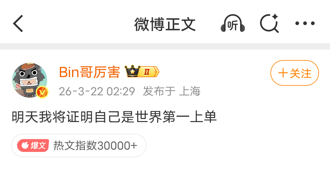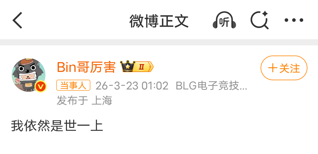 Bin是世一上从“我依然是世一上”的争议风暴,到全球先锋赛FMVP的冠军加冕——Bin用最硬核的方式完成了正名。