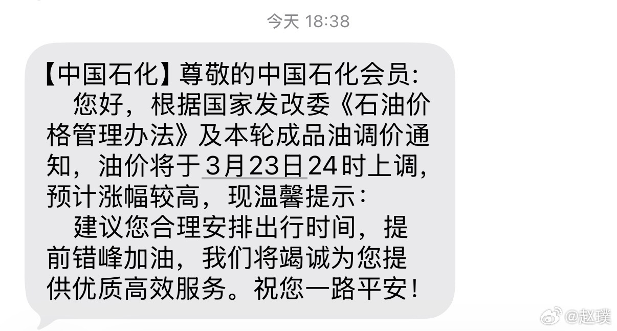 好家伙,油价要大幅上涨,中国石化都发短信提醒了!之前好像从来没遇到过😶 中国石