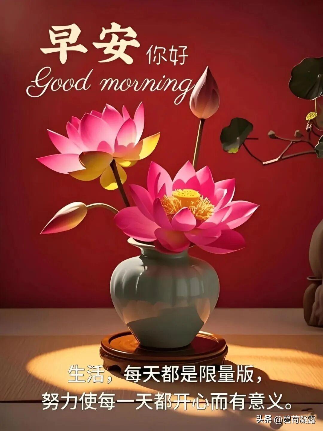 今天是新周第一天, 问候大家周一早安! 青山绿水百花艳, 清晨相约微信见, 每天互道一声安, 捎去祝福及思念, 但愿彼此多保重, 健康快乐每一天。 人生有好友,快乐才永久。 无论在哪里,友情在相守。 心中有牵挂,时常有问候。 祝福送温暖,健康又长寿。 您好早安!