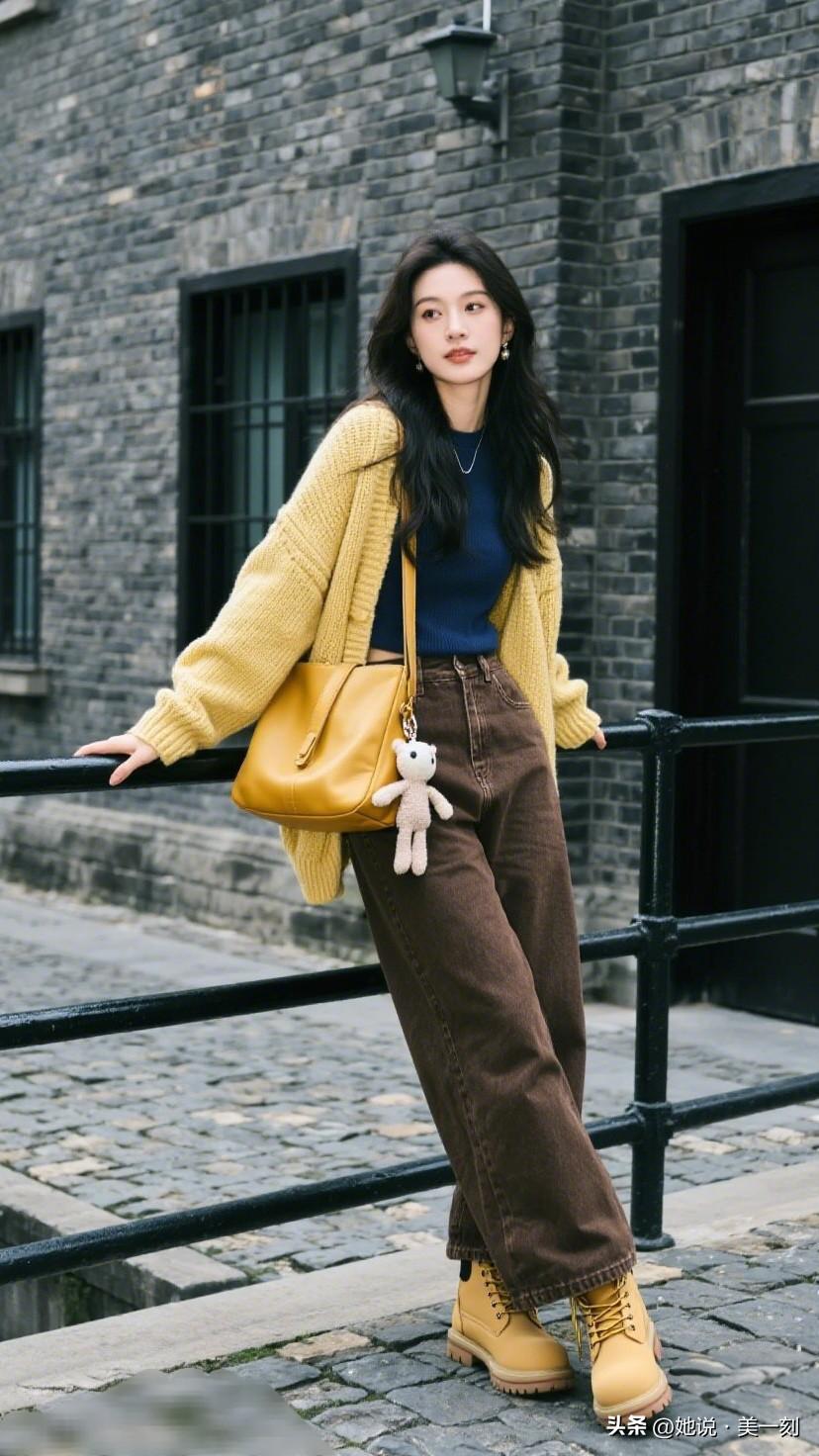 秋日漫步,优雅连衣裙与落叶相伴