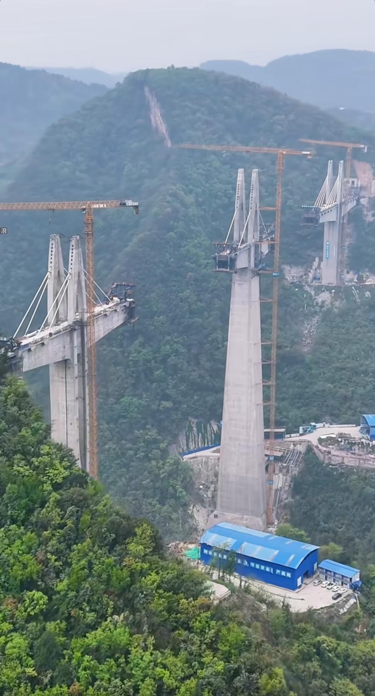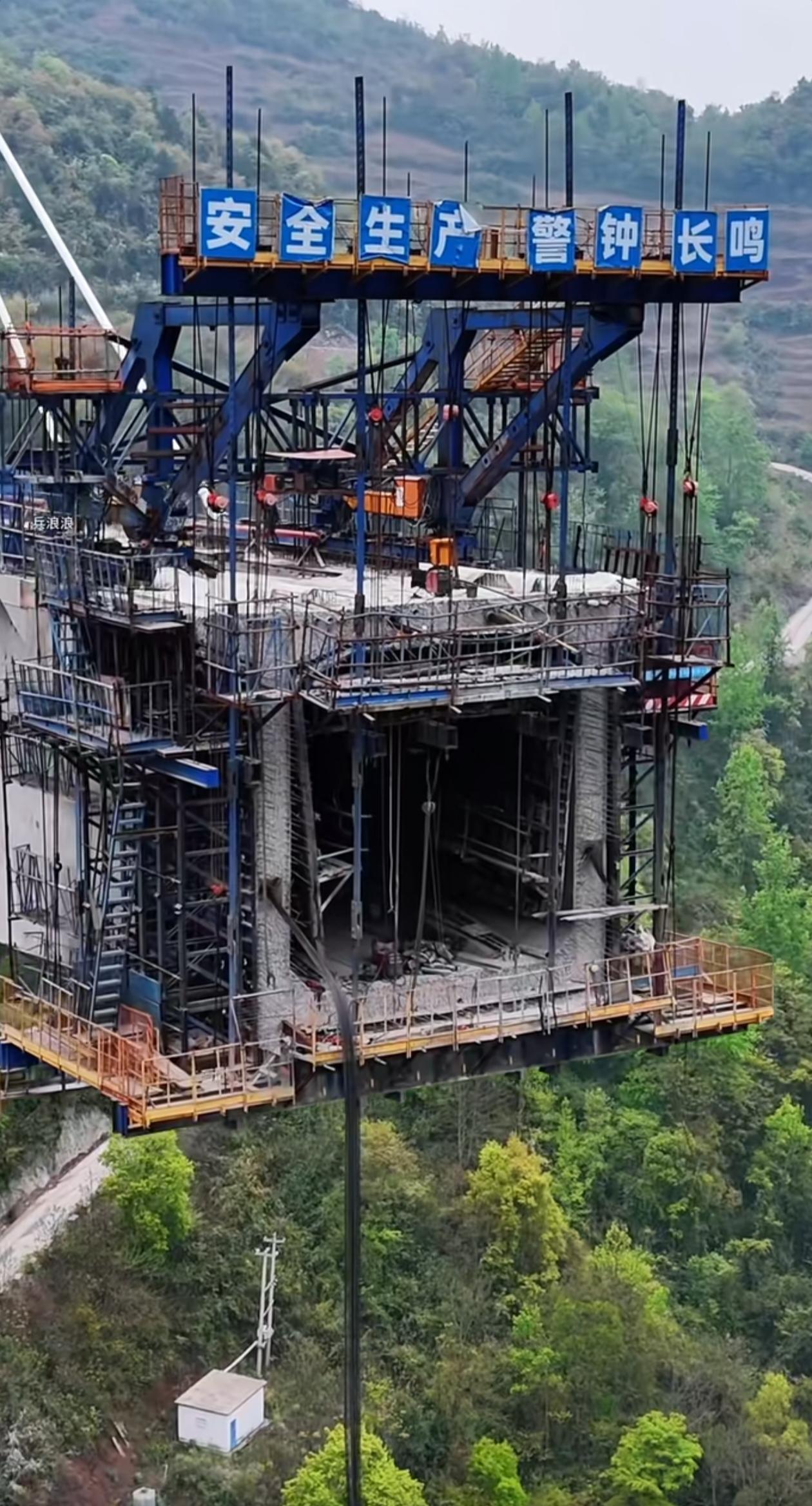 一直想不通这种桥是怎么修的,工人在高空作业,而不是在下面做好预制梁,空中一点一点推进,是怎么达到桥梁的完整对接的?最难的恐怕还是最后的收口吧。工人在上面要上厕所怎么办?可能一待就是一整天。辛苦这些伟大的建设者们,向你们致敬!