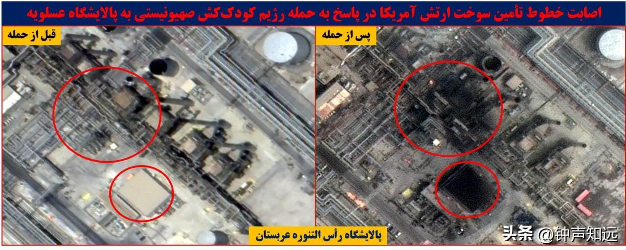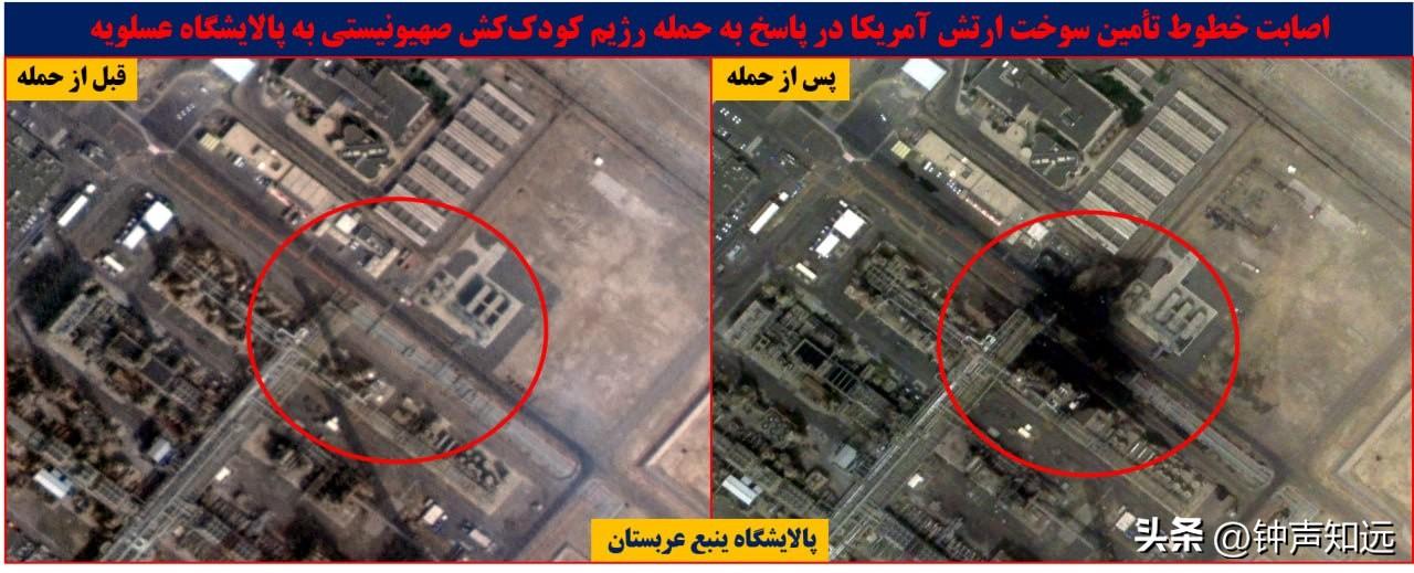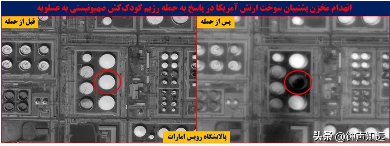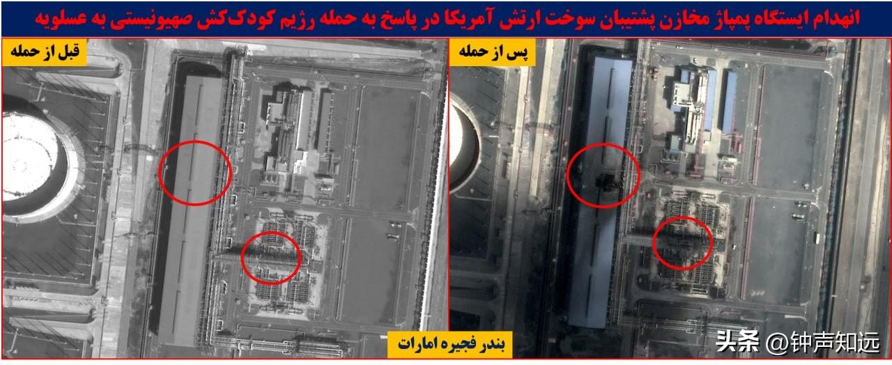 伊朗发布第3批打击效果卫星图,沙特、阿联酋、美军基地等关键设施被炸前后对比。 3月22日至23日,伊朗梅尔通讯社与法尔斯通讯社分批公布了最新的高清卫星影像,这也是伊朗“真实承诺-4”军事行动以来发布的第3批打击效果对比图,展现了精准打击的实际成果,海湾能源命脉和美军核心军事节点均出现明显损毁痕迹。 此前伊朗方面已在3月10日、3月12日晚先后发布两批卫星图,分别覆盖【巴林第五舰队】、【宰夫拉基地】以及【卡塔尔乌代德】、【沙特苏丹王子】等美军基地,而此次发布的第三批卫星图,将打击目标进一步延伸至海湾核心【能源设施和美军关键作战节点】,覆盖范围和打击精度都有明显提升。 此次被击中的目标覆盖【沙特】塔努拉角、延布炼油厂燃料供应线, 【阿联酋】鲁韦斯炼油厂备用燃料储罐、富查伊拉港燃料泵站及储罐, 这些都是海湾地区石油炼化与中转的核心设施,更是美军在中东军事部署的重要燃料补给来源。 卫星图中,原本完整的输油管线出现断裂缺口,储罐罐体坍塌变形,泵站区域留有明显爆炸痕迹,直接让相关能源设施的运转陷入停滞。 美军在中东的两座基地也未能幸免, 拉赫巴基地的数据中心、备用信息系统及TPS-75预警雷达,拉法哈基地的FPS-117预警雷达均遭到精准打击。 从对比图可见,雷达罩碎裂、天线倒塌,数据中心楼顶被击穿,核心电子设备损毁严重,美军的区域防空预警体系与指挥通信系统受到重创,这也印证了伊朗革命卫队此前声明中“美以多层防空体系崩溃、美军中央司令部陷入战略混乱”的表述。 这轮打击是伊朗对美以联合袭击其能源设施的强硬反制,自美以空袭伊朗布什尔天然气设施、南帕尔斯气田后,伊朗便将海湾盟友核心能源设施与美军基地列为合法打击目标,以“能源反制能源、精准反制精准”的思路展开报复。而随着关键设施遇袭,全球能源市场已掀起巨震,布伦特原油站上110美元关口,欧洲天然气价格单日飙升35%,海湾产油国的能源生产体系陷入混乱,美国在中东的盟友体系也出现明显裂痕。 伊朗方面明确警告,如果美以继续针对其人口中心或能源基础设施发起攻击,将采取“超出预期”的报复措施。此次第三批卫星图的密集发布,不仅是对最新打击成果的全面展示,更是对美以的再次强硬表态,伊朗具备穿透美反导体系、远程精准打击高价值目标的绝对实力,中东的战火走向,不再由美以单方面掌控。