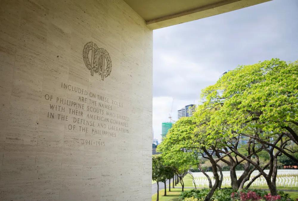 2026年3月18日,菲律宾马尼拉,美国第七舰队司令帕特·汉尼芬中将在菲律宾马尼拉美国公墓和纪念碑的献花仪式上致敬。 菲律宾马尼拉美国公墓(正式名称为 马尼拉美军公墓与纪念馆,Manila American Cemetery and Memorial)是位于菲律宾首都马尼拉东南郊波尼法西堡(Fort Bonifacio)的一座纪念性军事公墓,由美国战争纪念委员会(ABMC)管理,用于纪念在第二次世界大战太平洋战场中阵亡或失踪的美军及盟军人员。