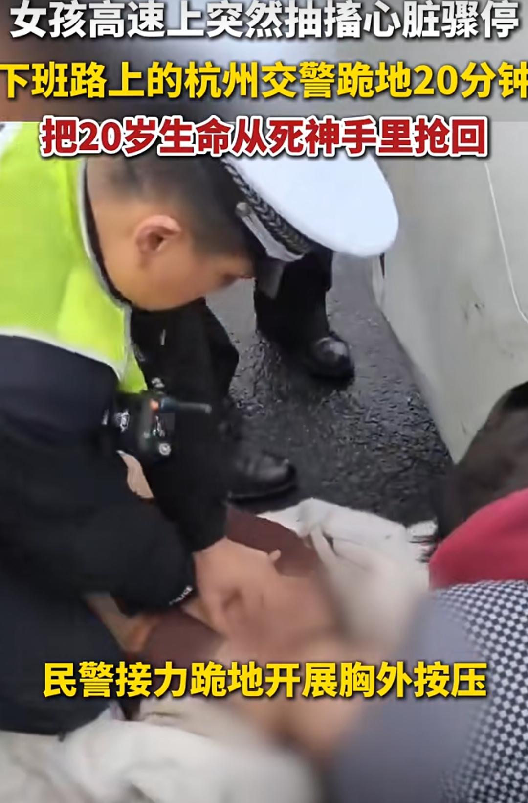 2026年3月1日,G56杭瑞高速临安段,一辆白色轿车突然停靠在护栏边。20岁女孩毫无征兆地突发抽搐、心脏骤停,急性心梗的突袭让这个花季生命瞬间悬于一线,父亲的呼喊在空旷的高速路上显得格外无助。 就在生死关头,下班路上的大队领导葛慧娟,接到调度火速救援,立即对患者实施心肺复苏。途经的交警第一时间冲至现场,毫不犹豫地跪在冰冷潮湿的路面上,接力为女孩开展胸外按压。一次、两次、一百次……手臂的酸痛不断加剧,膝盖被地面硌得生疼,但他们始终没有停下动作,20分钟的持续施救,每一次按压都在为生命争取生机。 120救护车抵达后,交警与急救人员无缝交接,心肺复苏全程未中断。经医院初步诊断,女孩为急性心肌梗死引发心脏骤停,万幸的是,经过及时救治,她已从深度昏迷中苏醒。女孩家属反复致谢:“等小姑娘出院,一定要当面感谢这些救命恩人!” 这20分钟的跪地,不仅是专业急救技能的展现,更是刻在交警骨子里的责任担当。他们本可以下班回家,却在看到危险时选择挺身而出,用凡人之躯,在高速车流的危险环境中,为一个年轻生命筑起了最坚实的屏障。 有人说,意外和明天永远不知道哪个先来。但在这场与死神的较量中,我们看见了最温暖的希望:当危险降临,总有一群人会放下自己的生活,用坚持与专业守护他人。这20分钟的坚持,不仅救回了一条生命,更让我们相信:平凡的岗位上,永远闪耀着不平凡的光芒,这些藏在制服下的担当,正是这个时代最动人的温度。杭州高速急救